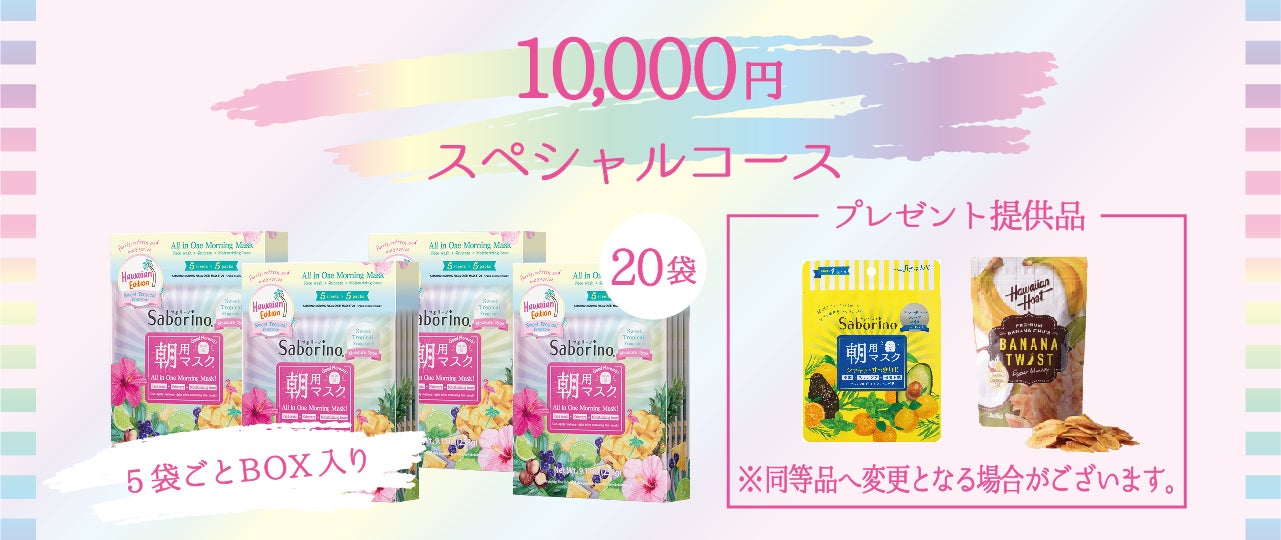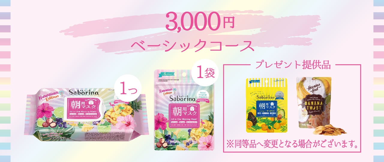 ハワイ限定品のサボリーノ目ざまシートを各コースに合わせてご提供いたします。
