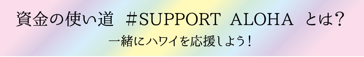 本クラウドファンディングにより集まった支援金の30%をこの「#SUPPORT ALOHA(サポート・アロハ)」へ提供し、ハワイ経済、観光業を応援します。