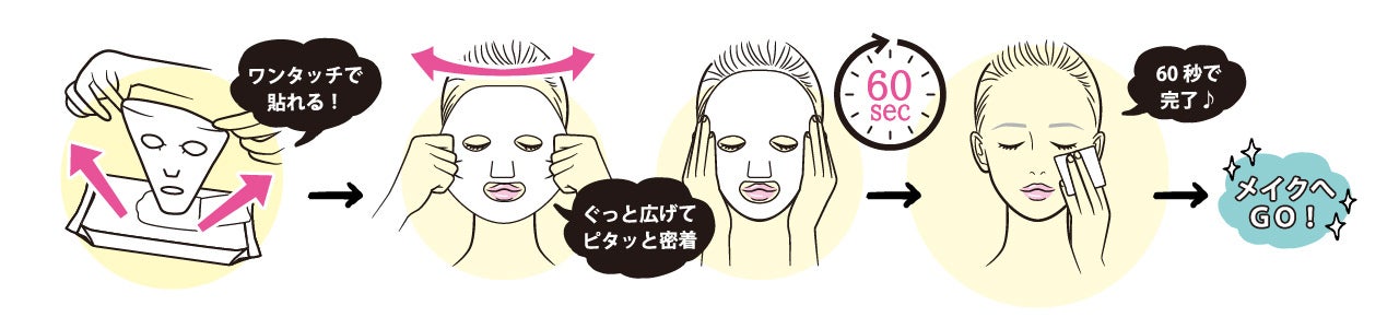 3.60秒ほどでマスクをはがします。折りたたんでのパッティングもオススメです。なじませた後はそのままメイクをしていただけます。
