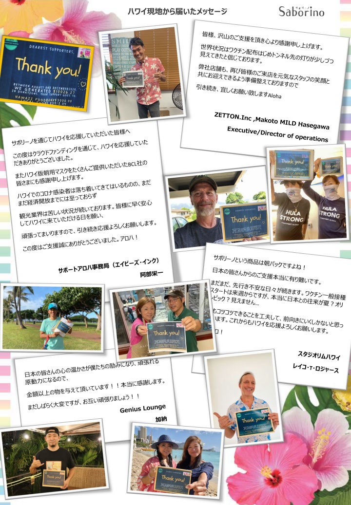 今回のハワイ応援プロジェクトで皆様にご支援いただき、