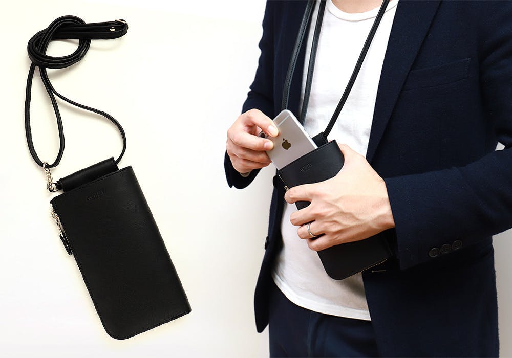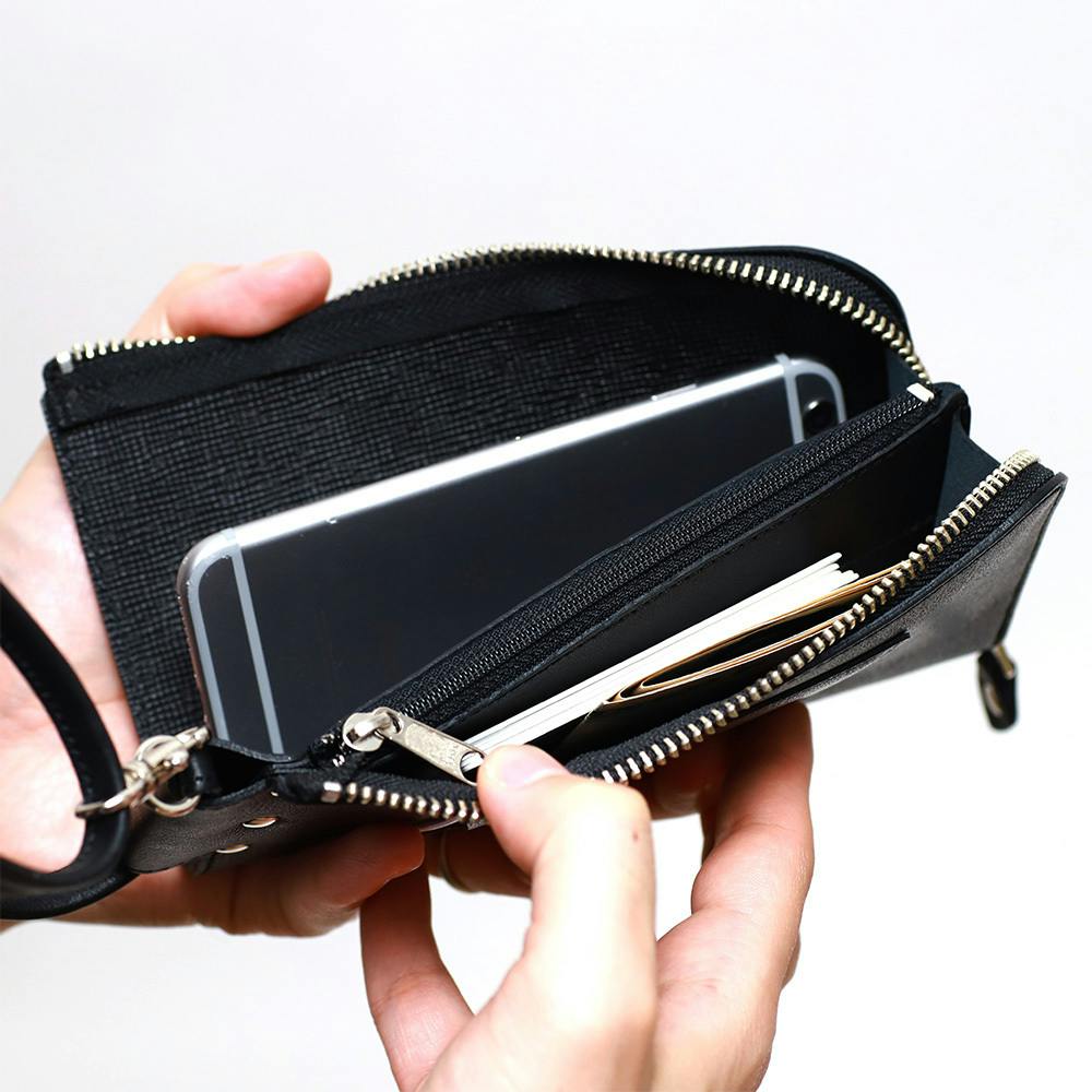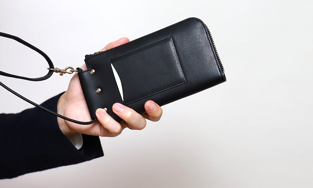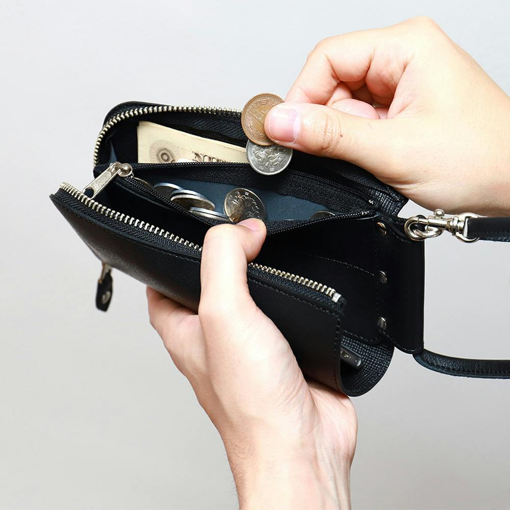 SAYAポシェットは刀の鞘(さや)をイメージしたスマホポーチです。![]() キャッシュレス時代の到来で、日常生活に必要不可欠になったスマートフォン。 持ち物のなかで、スマホの優先順位は財布と同じか、それ以上になりつつあります。 スマホさえあれば決済に困らない、そんな時代になりつつあります。 そんな「スマホ」をスマートに携帯しつつ、お財布としても使いやすい「スマホポーチ」。 スマホを素早く出し入れする動きと、L字の形から「刀の鞘(さや)」をイメージし「SAYAポシェット」と名付けました。 発想の原点は「L字ファスナー長財布」。 「財布の機能を残したまま、縦にスマホを出し入れするスペースを設ければ使いやすいのでは…」 というところから発想を広げました。 ![]() 従来の「お財布機能付きスマホポーチ」は「スマホ収納」の機能が メインであり「財布」の機能は"おまけ"の様な扱い。「財布」としての使いやすさが、ないがしろにされているものが多い印象でした。 そこで「財布としても使いやすく、支払いのしやすいスマホポーチ」をテーマにデザインを進めました。 ![]() 「スマホポーチ」に「L字長財布」の機能を追加。 中心で部屋を分割したような二層構造が特徴です。 従来の縦型スマホポーチとの最大の違いは「マチ」がある事。この「マチ」が大きく拡がり、中身が楽に取り出せます。 ファスナーを開ければ口が大きく広がり、財布としても使いやすい理想の形となっています。 また、ファスナーは「オートマチックロックスライダー」を採用。 スライダーを引っ張らない限りロックが掛かり、勝手に開いてしまうことはありません。 このように「ポーチ」の状態から左手に持った時「L字長財布」になります。従来のポーチ型のスマホウォレットと違い、「縦」ではなく「横」で支払います。 これにより自然な支払いを可能にしています。 ![]() インナーの中央仕切りは2枚の革を上下で合わせた形です。 ![]() 「小銭ポケット」と「カードスペース」。 かさばる2つの収納スペースを「一枚の仕切り」にまとめる事により厚みを抑えています。 上が「小銭ポケット」下が「カードスペース」になります。それぞれ高さは約4cm。 革の重なりを少なく、シンプルに仕上げ薄さをキープしています。 ![]() ![]() 浅い作りの「小銭ポケット」。 深さは4.0cmと浅めの作りになっており、指が奥まで入りやすくなっています。 小銭の確認がしやすく、取り出しやすい作りです。 一見、狭い作りに見えますが小銭は25枚~収納可能です。 ![]() 革に入れたスリット(切込み)でカードをまとめます。 ![]() 大きく開けられた9.0cmのスリット(切込み)。 ![]() このスリットにカードを挟み込むようにしてまとめます。 5枚程度のカードが収納可能です。 ![]() お札は二つ折りにしてフリースペースへ。 10枚~収納できます。 余計なポケットは設けずシンプルな作りでカードとお札をまとめます。 ![]() 外側はつなぎ目のない一枚革で包み込むように仕上げました。スマホが接する内側には、型押しの牛革を貼り合わせることで強度を上げるのと同時に画面に革のクズがつかないように仕上げています。 内張りは牛革の型押し使い終わったスマホを簡単に収納できるよう、あえてフラップはつけていません。![]() 大き目のスマホも収納OK!! iPhone 11Pro Max (6.5インチ 158.0 mm×77.8 mm×8.1 mm) 対応チェック済み。 ※10月14日に発表された新作のiPhone12 Pro Max (6.7インチ 160.8mm ×78.1mm×7.4mm) こちら同型のダミーをでテストをしています。 ![]() ダミーサイズ (W162.0mm × H80.0mm × D11.0mm) 頭がはみ出ますがしっかり収納できます。 「6.7インチ」が収納できるスマートフォンの最大サイズになりそうです。 収納している小銭やお札により、収納力が変わる為あくまで目安とお考え下さい。 ※カバーをつけた状態では、ファスナーが開閉できない恐れがあります。 ※機種ごとに収納できるかどうかの質問にはお答えできかねます。 ![]() 付属のショルダーベルトは長さの調節が可能です。調整可能幅74~146cm、ネックポーチ(ネックウォレット)としてだけでなく、斜め掛けをすればコンパクトなマイクロショルダーとしても大活躍。 薄マチなのでジャケットの下に着用しても膨らみが目立ちません。 ![]() CAMPFIRE特別リターンの「ショートストラップ」。 全長:27cm。短いショルダーベルトです。 ![]() バッグやベルトループから下げれば「外付けポーチ」風に使えます。 キャンプファイヤー特別リターンとしてご用意しました。 是非ご検討ください。 ![]() 背面にはICカードが1枚入るポケットを設置。 ![]() 首や肩から下げた状態でICカードをそのままタッチ。 スムーズな支払いを実現します。 ![]() また、ベルトの先端にキーリングを咬ませて鍵を取り付ける事が出来ます。 ![]() 「財布・鍵・スマホ」ちょっとしたお出かけならバッグを持たずSAYAポシェット一つでOK。 身軽なお出かけをサポートします。 ![]() 【サイズ】 W10×H19×D2(cm)【重 量】 約90g (本体のみ) 【素 