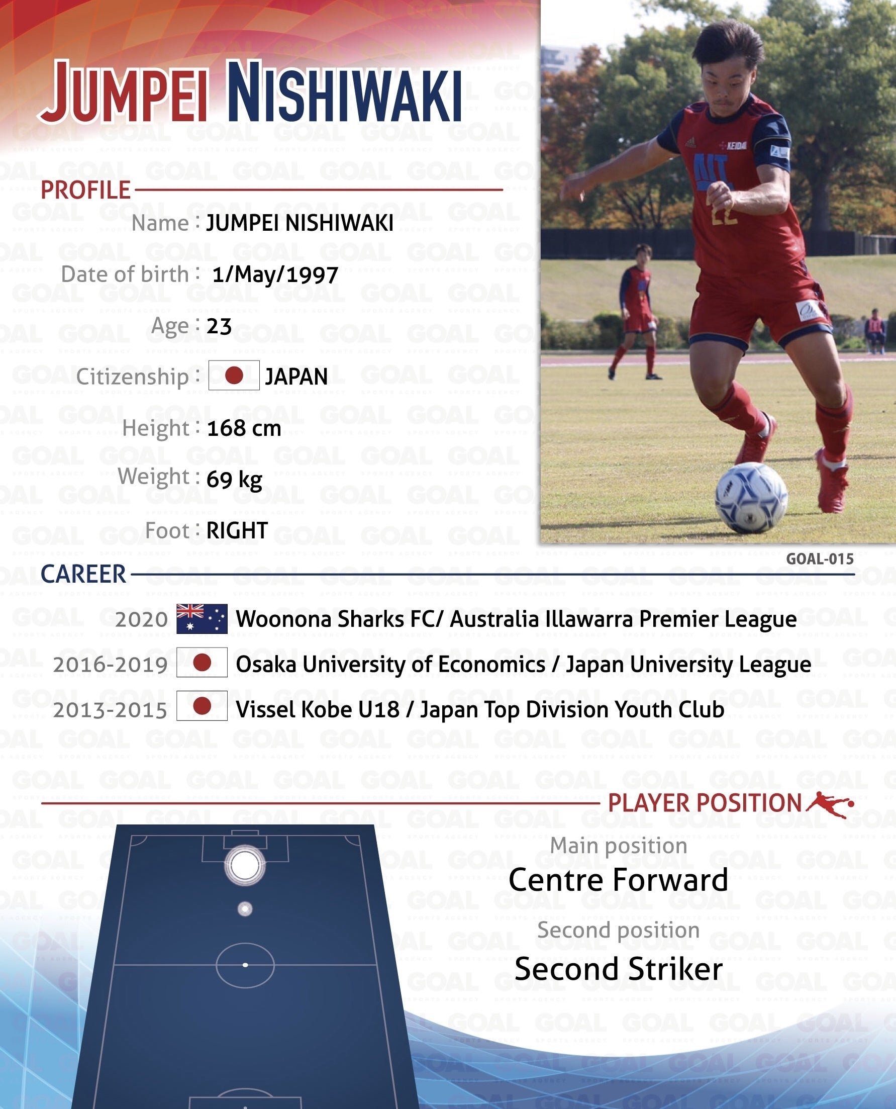 大阪経済大学を卒業後、海外でサッカー挑戦したいと思いオーストラリアに渡りトライアウトを経て契約しました。