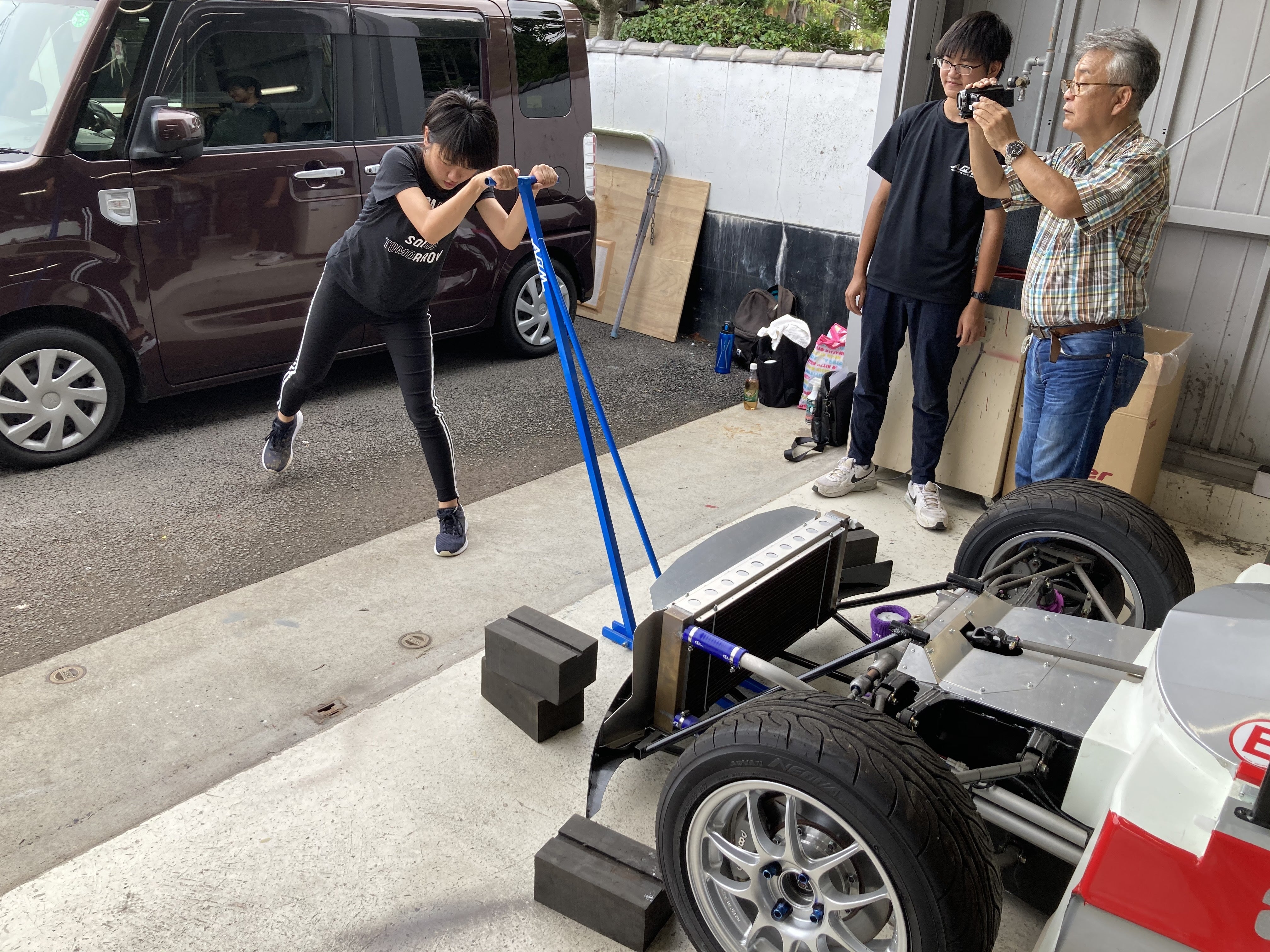 昨年8月から6人ほどの高校生が、月に2度ほど工場に来るようになりました。レーシングカーの製作およびメンテナンスの勉強をしています。徐々に口コミで参加する学生が増え、現在は10名ほどの学生が定期的にきています。