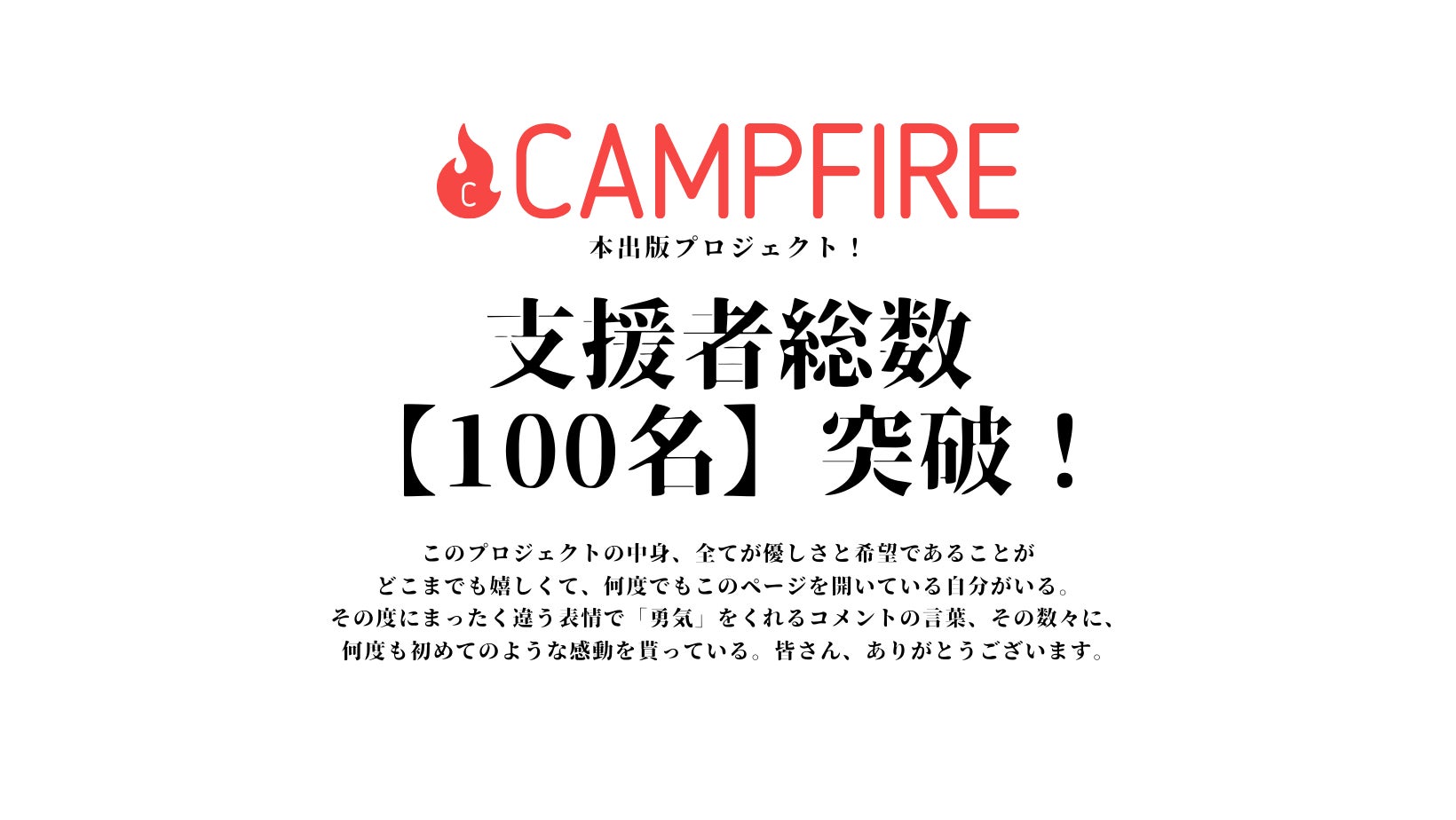 支援してくれた100名の方々、そして仲間たちに感謝をします。