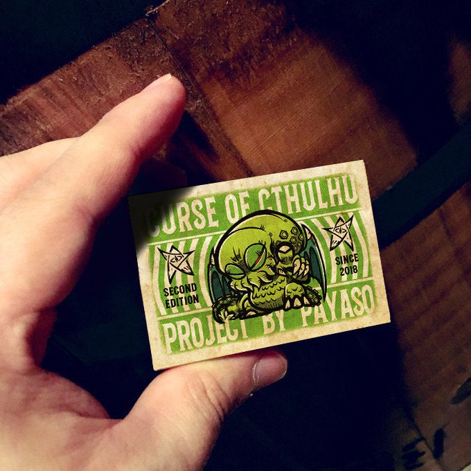 通販限定にもかかわらず、PAYASOのゲームの中で月間売り上げ数No1のゲーム「Curse of Cthulhu」の、第2版クラウドファンディング限定パッケージ版とクトゥルフのビックリマン風のシールを、