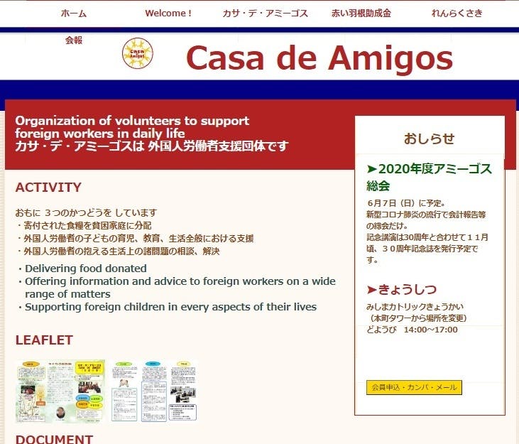 今回のプロジェクトの支援先の一つの、カサ・デ・アミーゴスから外国人労働者の状況をお知らせ頂きました。