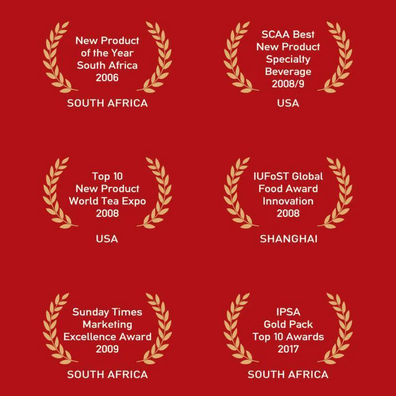 以来、消費者の支持を受けて成長し、本国南アフリカでは大変著名な商品として、全国展開のスーパーで広く販売されています。さらに、多くの有名カフェチェーンでレッド・エスプレッソをもとに作られる様々なルイボスドリンクがメニューを彩ります。