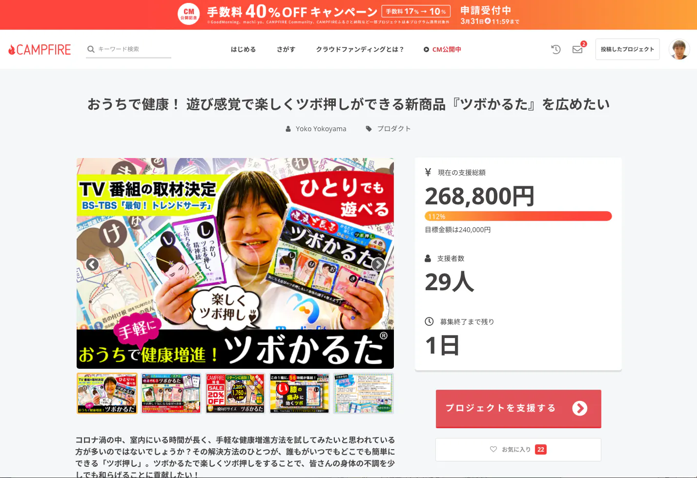 明日で終了予定のクラウドファンディング、