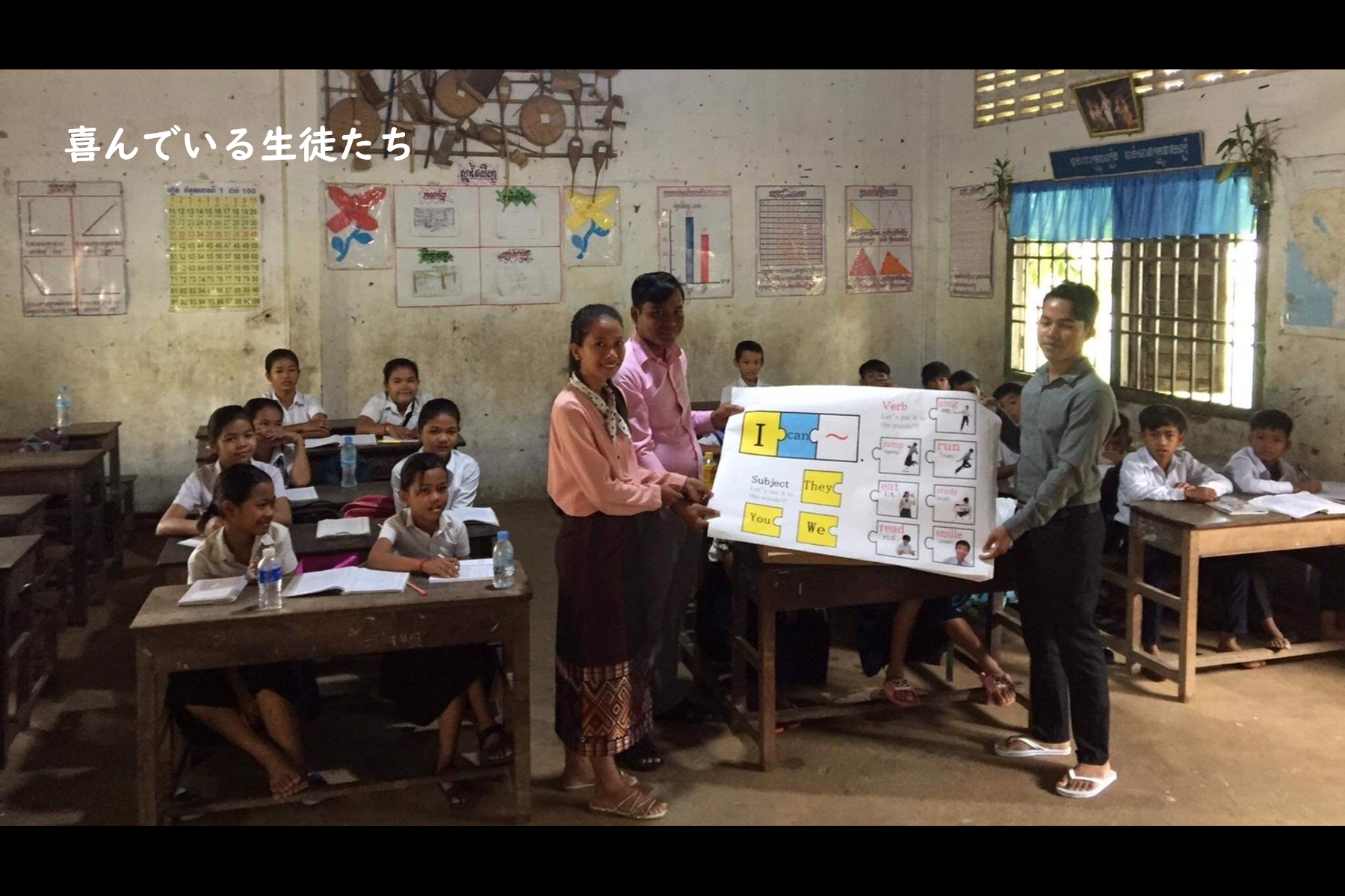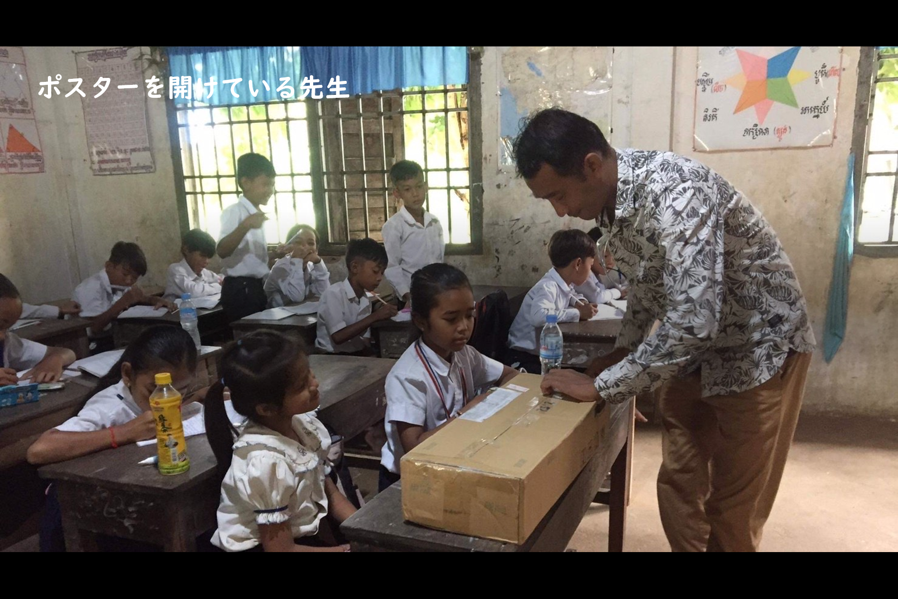 1、英語とクメール語で書かれている手作りポスターと動画をカンボジアに送る。