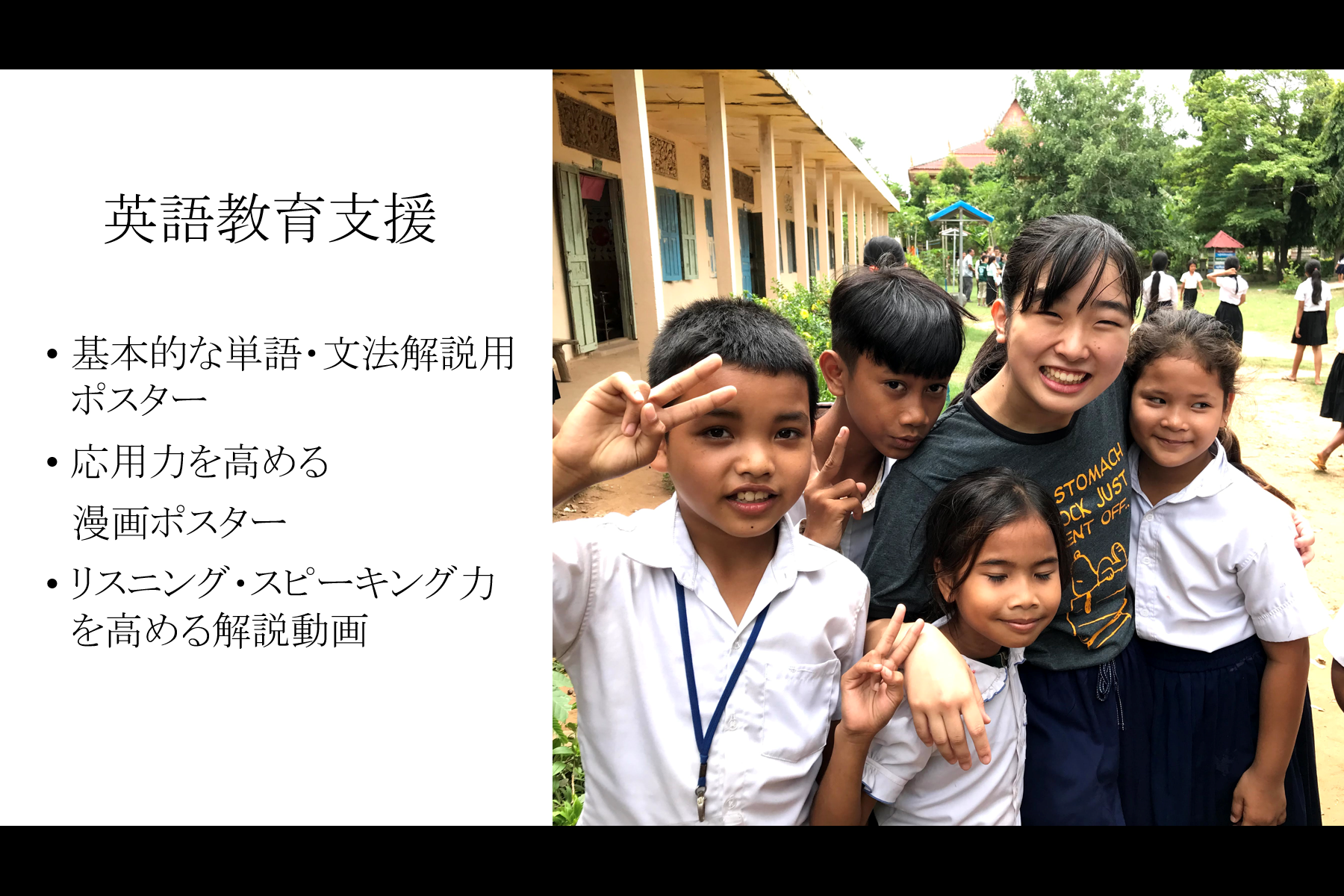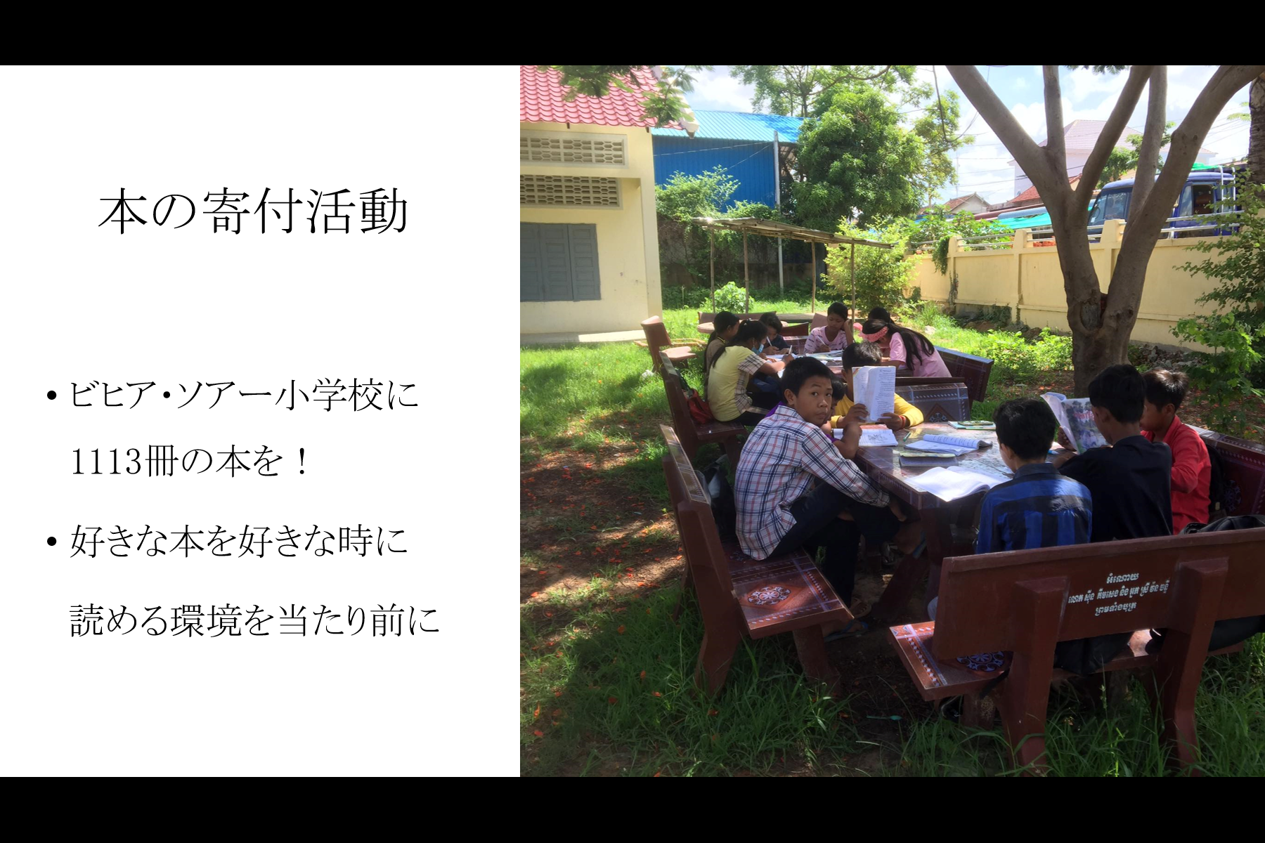 2、カンボジアの小学校に英語の絵本を届ける。