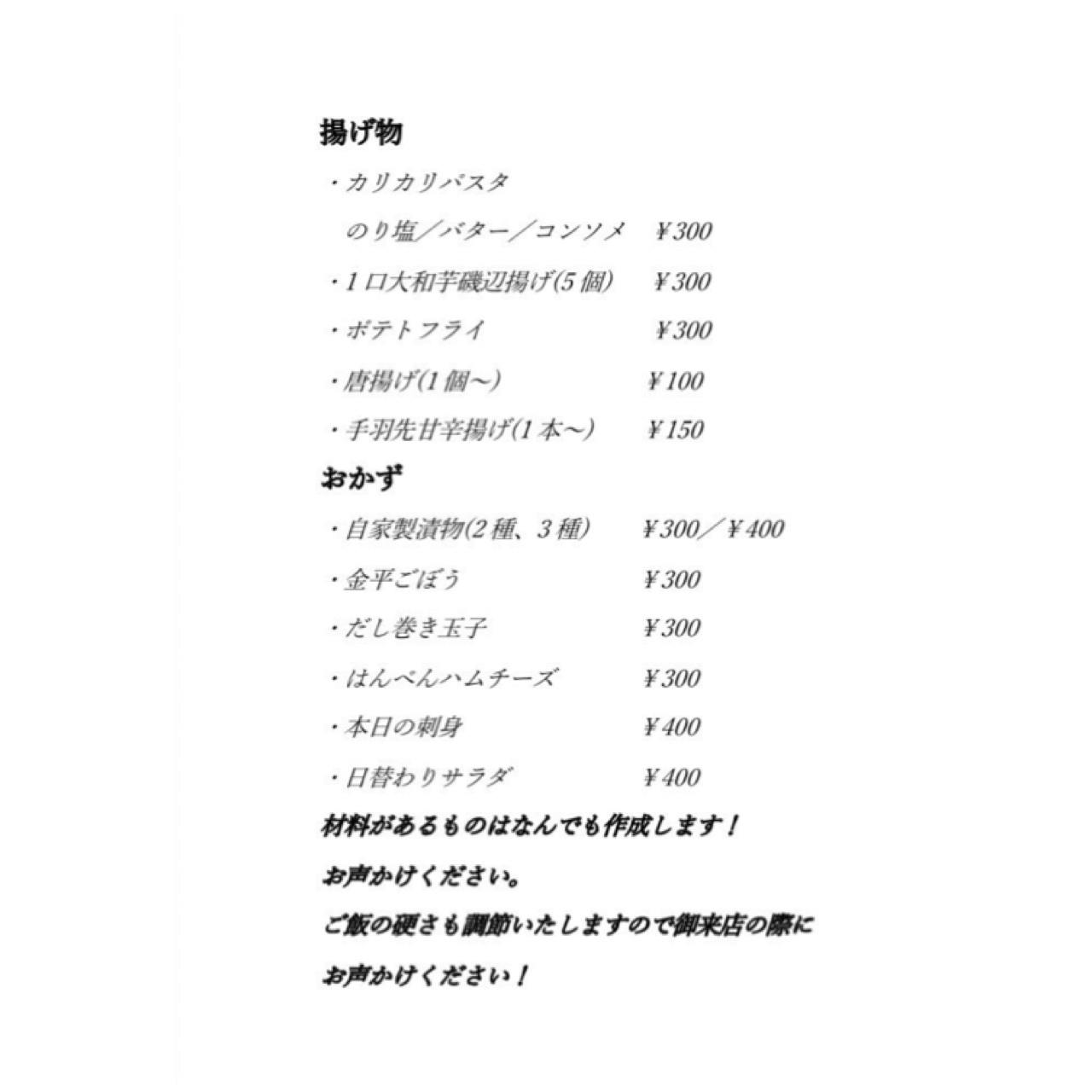 お酒を飲まない方にも楽しんでいただけるようにソフトドリンクも充実させ、一人暮らしのご老人の方が食事に来て小さいお子さんと交流出来るようなアットホームなお店を目指しています。
