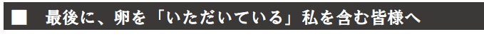 この卵が届き、平飼いという世界基準の考え方、飼養法が日本でも拡がり、卵の価値が見直されるよう祈っています。