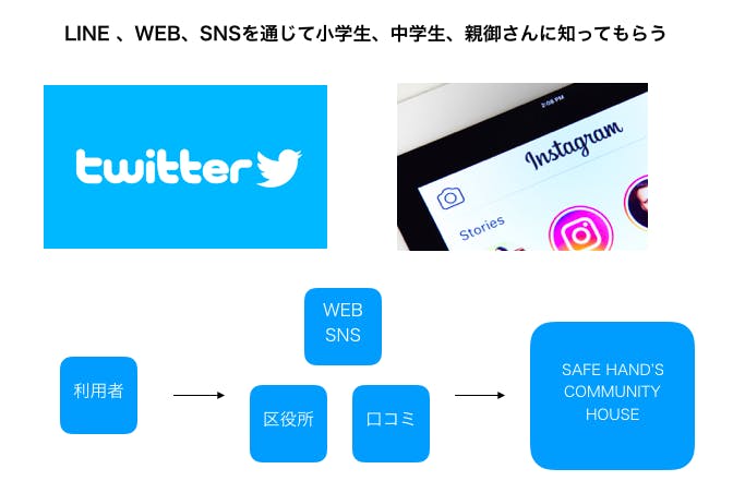 基本的には新宿区内のお店に協力してもらい、ポスターを貼ったりSNSを使って、親御さんや子供から直接施設に連絡が取れるようにします。子供だけでの施設見学は可能ですが利用時はご家族の方を含めた面談があります。