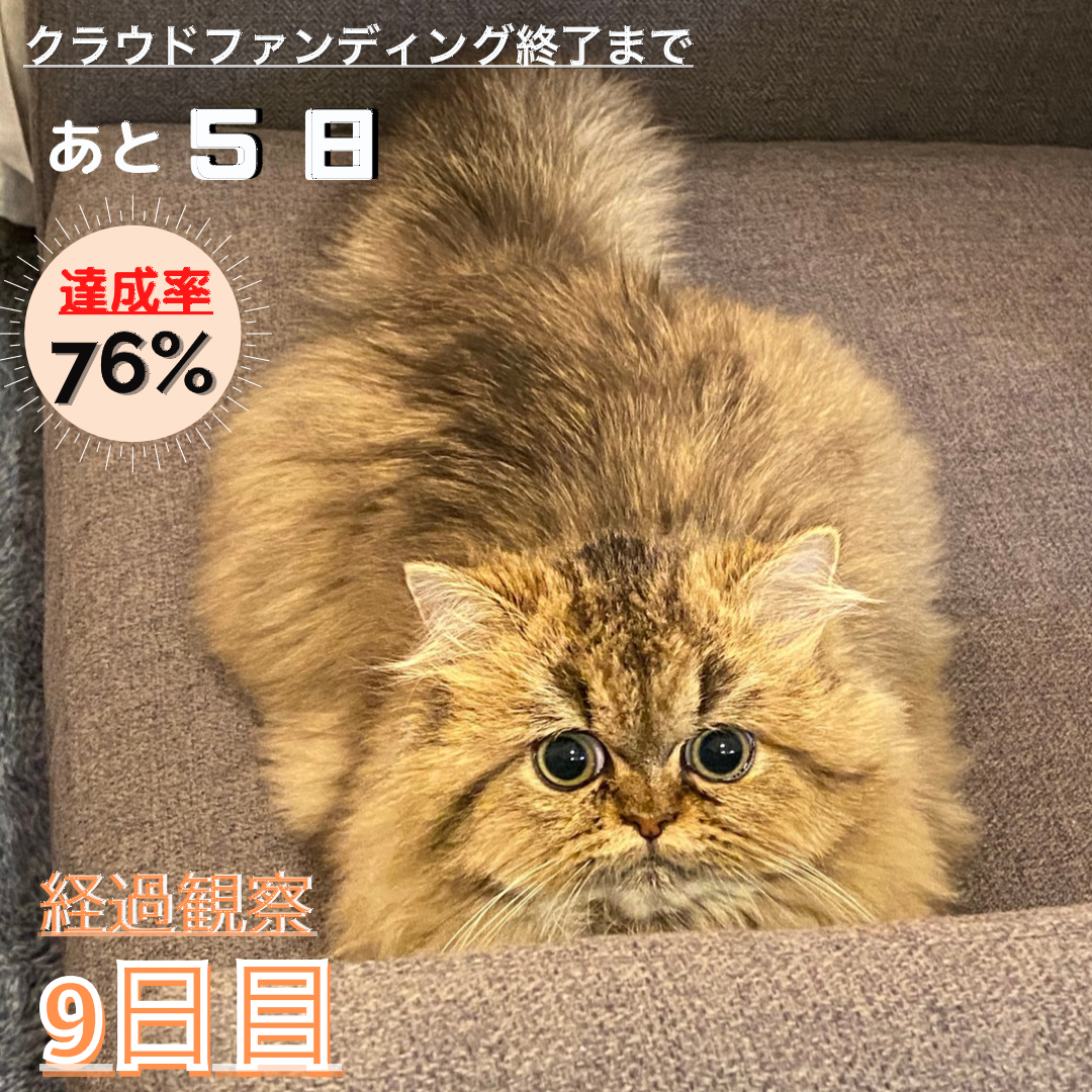 経過観察12日目体重 2751g食うんち×1今朝はこっちゃんの方がお寝坊さんで、起こすまでずーっとぬとぬくぬく寝てました!寝起きまだ寝ぼけ眼で、今日はなんだかおっとり静かめな感じ(●´ω`●)元気ない?かと思ったけど、ご飯もしっかり食べてうんちもして遊んでて今日も通常運転で何より☆こっちゃん、キャッチミーイフユーキャン付属の棒が大好きすぎて、毎朝仕事の充備をしてる母ちゃんの足下まで咥えて遊べと持ってきます笑時間に余裕がある時はチョイチョイとやって遊びますが、余裕がない時は一人でずーっとチョイチョイやって遊んでます!仕事から帰ってきたらキャットタワーのてっぺんで寝こけてました笑母ちゃんも寝たいぜぃ〜笑そして、おもむろに寝室から久しぶりにワンワンを持ってきて、蹴り蹴り。猫に咥えられるワンワン。ファイッ!!っていう試合開始のゴングが聞こえそうなくらい一生蹴り蹴り痛めつけてました笑 ワンワンカワイソウ。そんなこんなでこっちゃんは今日も元気です!!クラウドファンディングが残すところ2日となりました‼12/20 日曜 23:59で終了となります。いつも、シェア、ご協力、ご支援して頂き本当に本当にありがとうございますm(_ _)m今日80%の壁を越えました!!涙本当に心から嬉しいです!!ありがとうございます!!残り2日、自分の出来ることが何かしっかり考え、精一杯最後まで走り抜けたいと思います‼残り2日となりますが、今しばらくお付き合い、応援の程お願い出来れば幸いですm(_ _)mよろしくお願い致します‼本日も最後までお読み頂きありがとうございます。