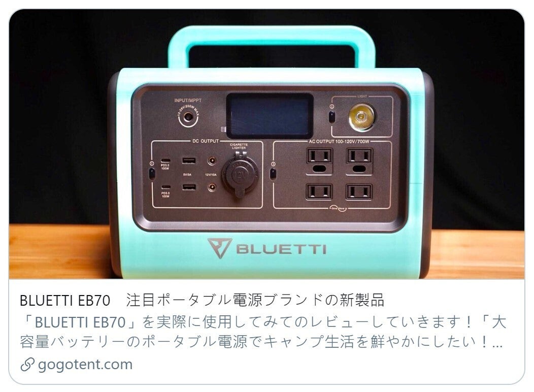 この度は、小型ポータブル電源【BLUETTI EB70】のプロジェクトにご支援、ご関心をいただき誠にありがとうございます。今日の本題は、モデル機を実際使用していただき、レビューの記事を紹介させていただきます。記事は様々なシーンで使用のご紹介がありますので、ご都合がよい時、サポーターの皆様に更に参考になれるように読んでいただければ幸いです。