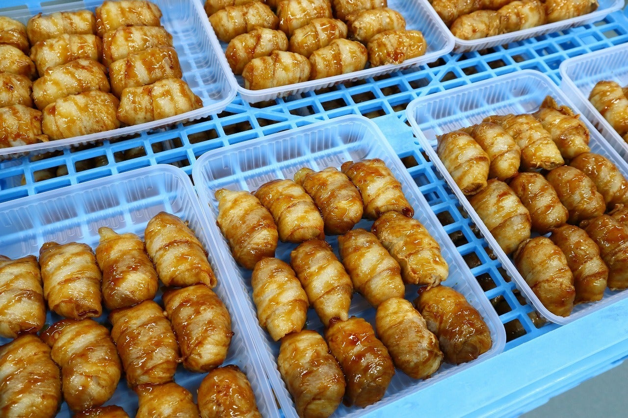 ごはんの里の肉巻きおにぎりは、デンマーク産の豚バラ肉を使用しています。品質が良く安定供給が可能で、ごはんやタレにマッチするお肉を選んでいます。
