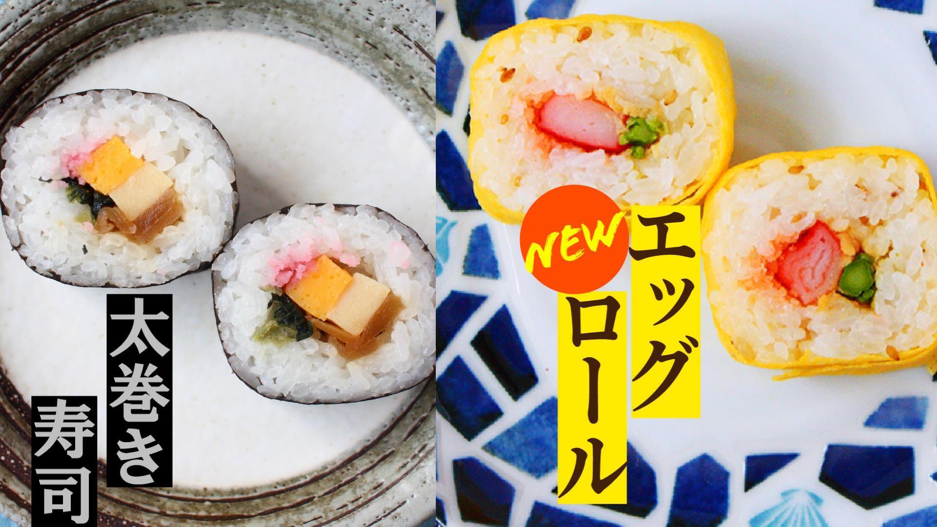 左の写真がエッグロールで、錦糸玉子で巻いている巻き寿司です。