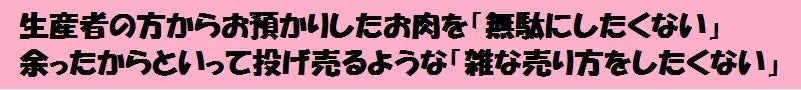 そこに賛同し、ご協力いただける会社様にお肉のカットや調理に関する料金を抑えていただきご購入していただける方に喜んでいただける様、価格以上の価値をお届けしたいと思っております。