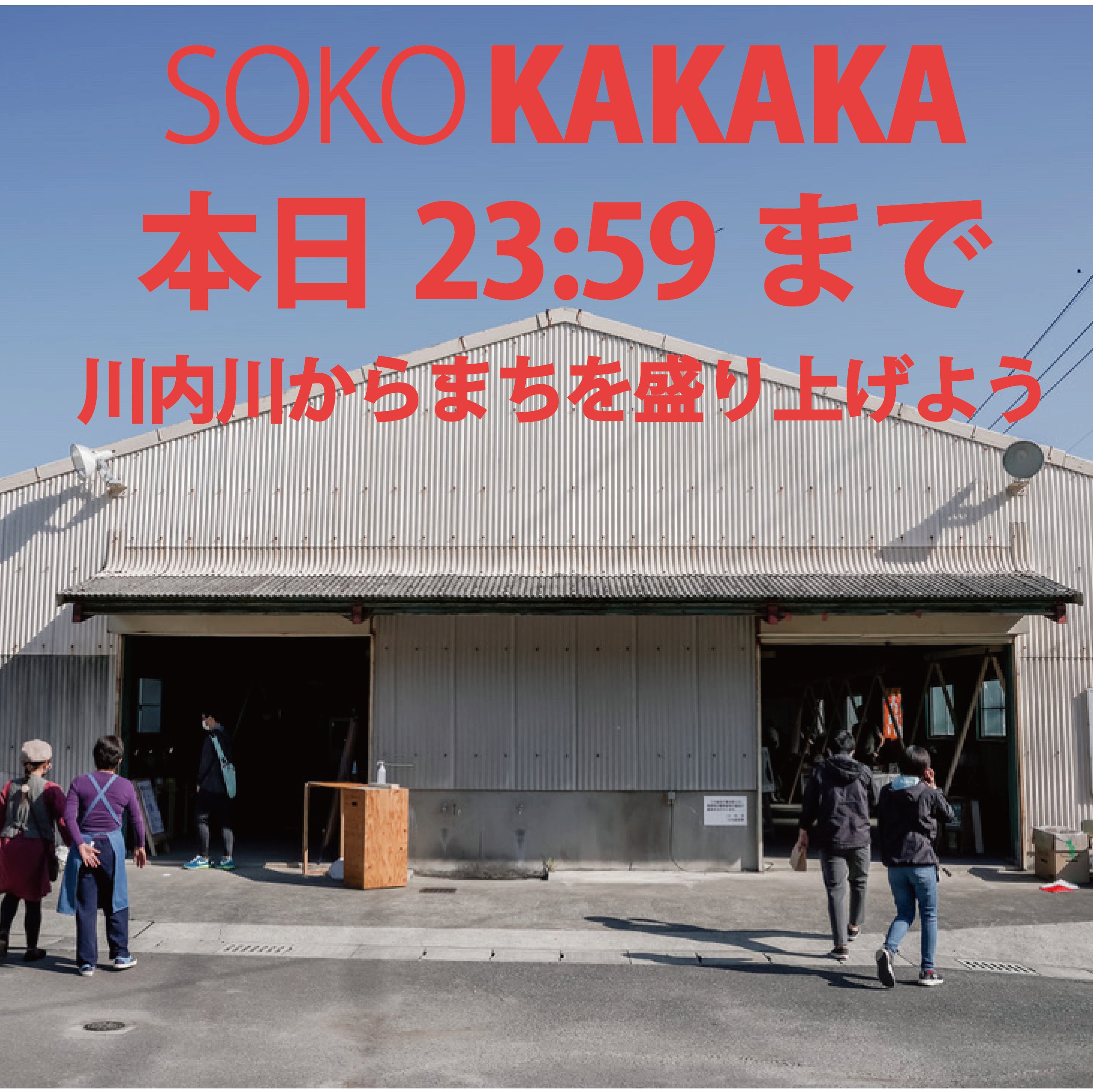 こんにちは!プロジェクト発起人の田尾です。2020年12月30日をもちまして、本クラウドファンディングは期間終了となりました。皆様による最終日の怒涛の追い上げによって、目標金額を超えるご支援をいただきプロジェクト成功としてフィニッシュを致しました。179人もの方から総額1,732,500円のご支援を賜ることができました。心の底からの感謝と共に身の引き締まる想いで一杯です。このプロジェクトをきっかけに繋がることができた方や、これまで以上に深く関わり合いを持つことができた方など、私自身を取り巻く環境に多大なる変革をいただいたと共に、幸福と充実感を与えてくださった45日間でした。多くの出会いと学びをいただいて、チャレンジして本当に良かったと思っております!また今回リターン品への出品をご協力いただいた皆様におかれましても、ご多忙の中、本プロジェクトへの理解とともに快く出品をいただきましたこと、心より御礼申し上げます。改めて、リバーフロントマルシェをきっかけとしたSOKO KAKAKAのプロジェクトは、薩摩川内市の方、出店者の方、関係者の皆様、そしてお客様方に支えられて成り立っている事を強く感じております。そして、今回のクラウドファンディングを機に、もっともっと具体なビジョンを発信していくべきだと確信を持つことができました。そして早速、本日から川内川を起点としたまちを盛り上げていく活動のスタートとなり、ここからが本番です。ご支援・応援下さった皆様からのメッセージを心に刻んで前進して参ります。皆様からのご期待に少しでも多く添えるよう全力で走ってまいります!・・・・・・・・・・・・・・・・・・・・・・・・・・今後の予定としては、2021年2月〜3月をプレオープン期間として、4月をグランドオープンとなるようアクションを起こしていきたいです。2021年■SDGs廃プラワークショップ(全2回)※要予約1月16日(土)10:00〜13:00(第1回)1月30日(土)10:00〜13:00(第2回)<申込リンク>https://www.city.satsumasendai.lg.jp/www/contents/1588292948487/index.html?fbclid=IwAR0ALwZu5ByJ7wh3ZfDowIUrRerSk2M_XMV3qjVWFZ5g100JaTJgNdEaInA■週末マルシェ(名称仮)プレオープン※出店者募集中※3月以降も週末マルシェ開催予定<オープン日>2月6日(土)10:00〜18:002月7日(日)10:00〜18:002月14日(日)10:00〜18:002月21日(日)10:00〜18:002月28日(日)10:00〜18:00<出店者登録申請リンク>https://forms.gle/B9GhLWqsLr37kZtn9■農家直売マルシェ(名称仮)2月18日(金)9:00〜13:00予定・・・・・・・・・・・・・・・・・・・・・・・・・・SOKO KAKAKAを拠点に,週末マルシェやイベント開催、そして薩摩川内市中心地では初となるSUPやサップネスなどの水辺アクティビティと共に事業展開します。地域の子どもから大人、地元の高校生やカップル、観光でまちを訪れる人々にも気軽に川内川で遊び、川内川に親しんでいただきたいと考えています。これから先、川内川に沢山の笑顔が溢れる風景が当たり前になるように精一杯尽力していきます。薩摩川内市に暮らす人々が日常的に川内川の河川敷に集い、誇りと愛着を持って「このまちには川内川があってね、すごく楽しいまちなんだよ」と話したくなるようなきっかけを支援いただいたお金を1円も無駄にすることなく使わせて頂き生み出していきます。なので皆様、しっかりと見ていてください!!!引き続き応援宜しく御願い致します!この度は誠にありがとうございました。そして年末にお騒がせをしました!!皆様良いお年を!SOKO KAKAKA /カカカ 代表 田尾 友輔