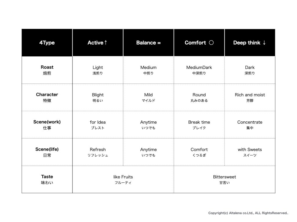 一杯のコーヒーでも職場や生活スタイルに合わせてA~Dの4つのシーンから選択いただくことできます。今後は、はじめて注文するお客様でもご自身の好みにマッチする仕組みを提供予定です。