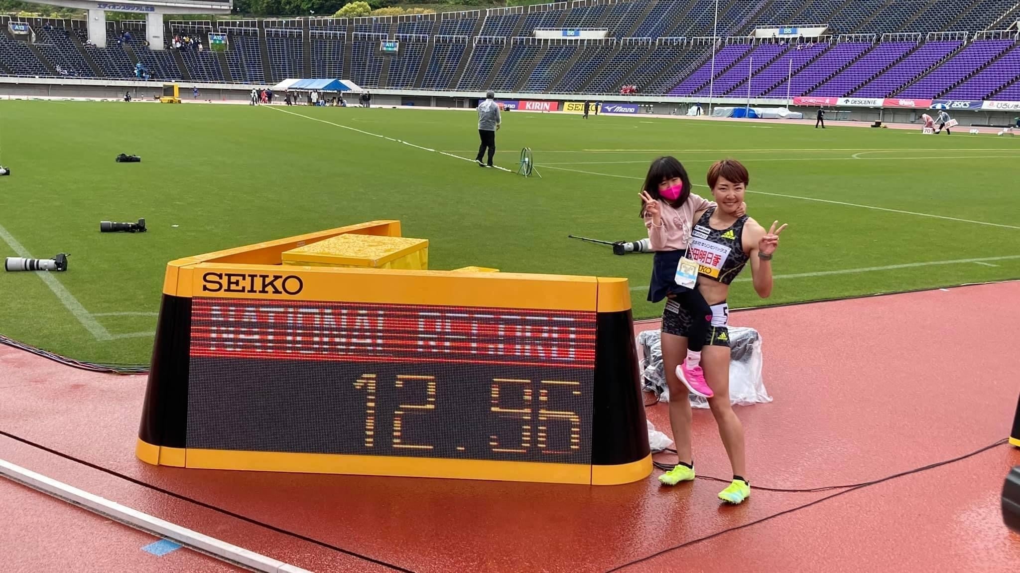 寺田明日香は4/29の織田記念大会でシーズン初戦を迎え、見事、自身の記録を0.01秒更新する12.96秒で日本記録を更新することができました。