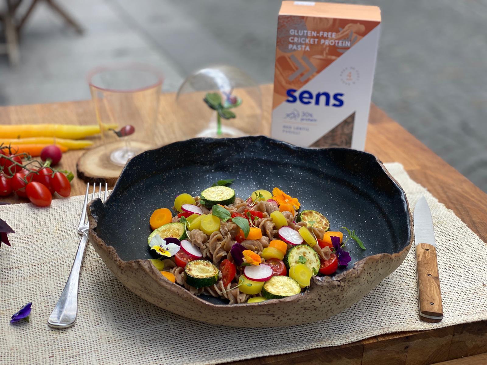 SENS クリケットパスタを使ったシンプルなパスタです。調理は簡単!野菜をふんだんに使い、オリーブオイルで味付けしただけのシンプルな一品です。