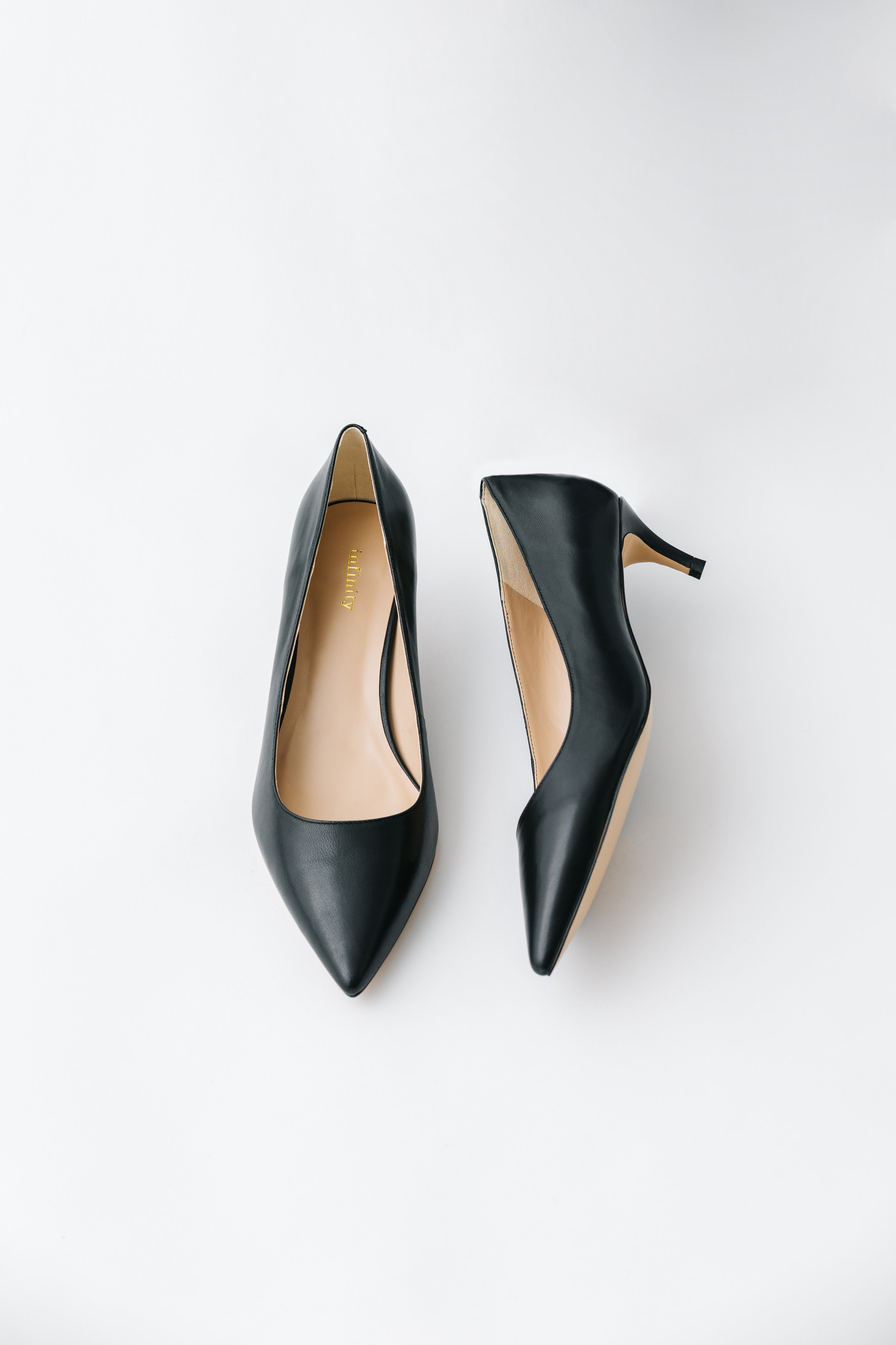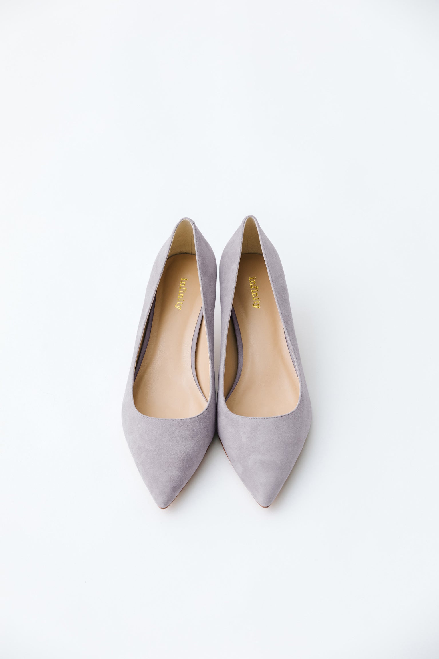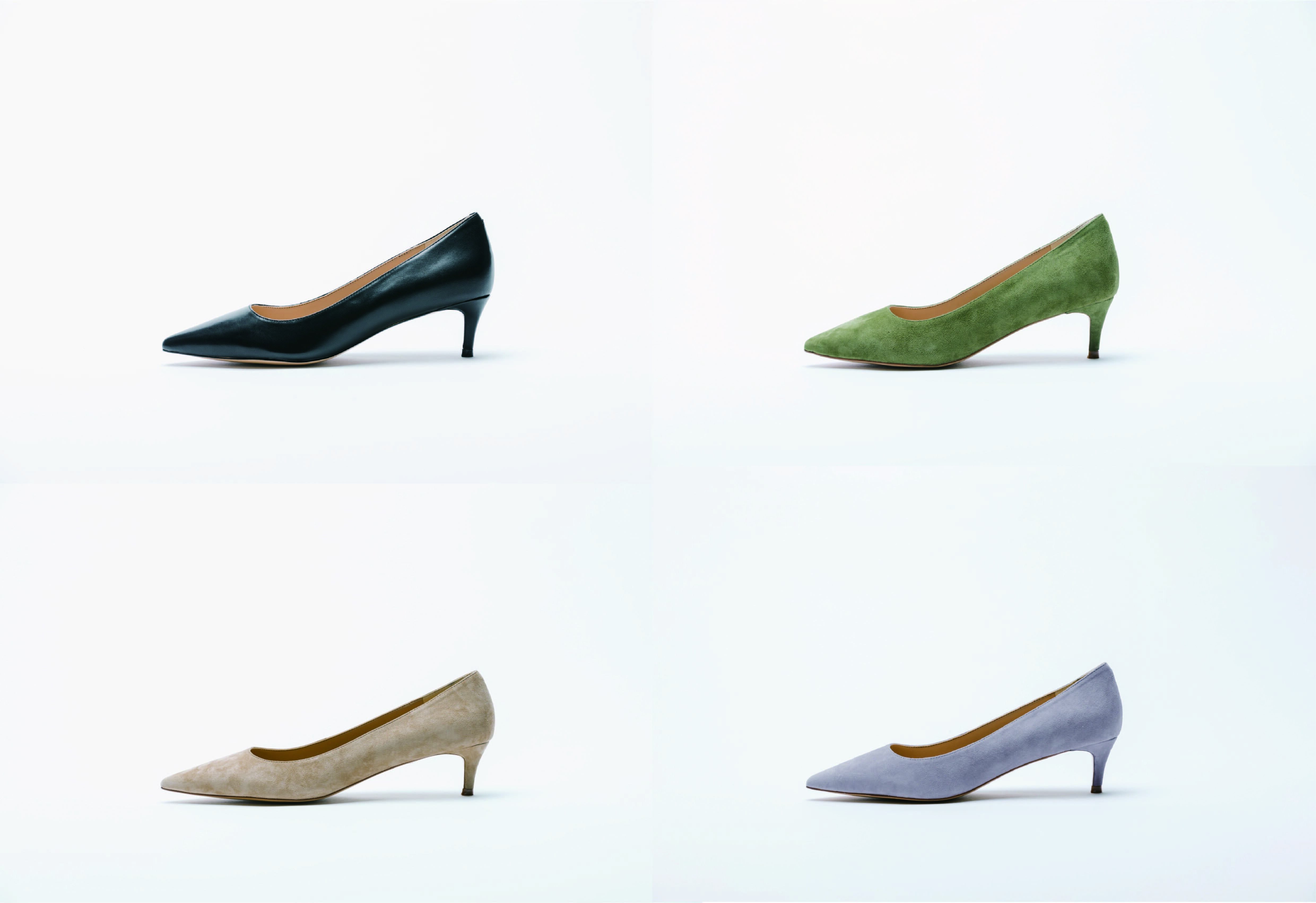 そして最後にヒールの高さ。足が長く美しくみえるギリギリのヒールの高さでいかに足に負担をかけずに綺麗なシルエットをだすか。を目標に履きやすさとデザイン性を兼ね備えたパンプスの設計にあたってまいりました。たくさんのサンプルを作り完成したのがinfinityのパンプスです。