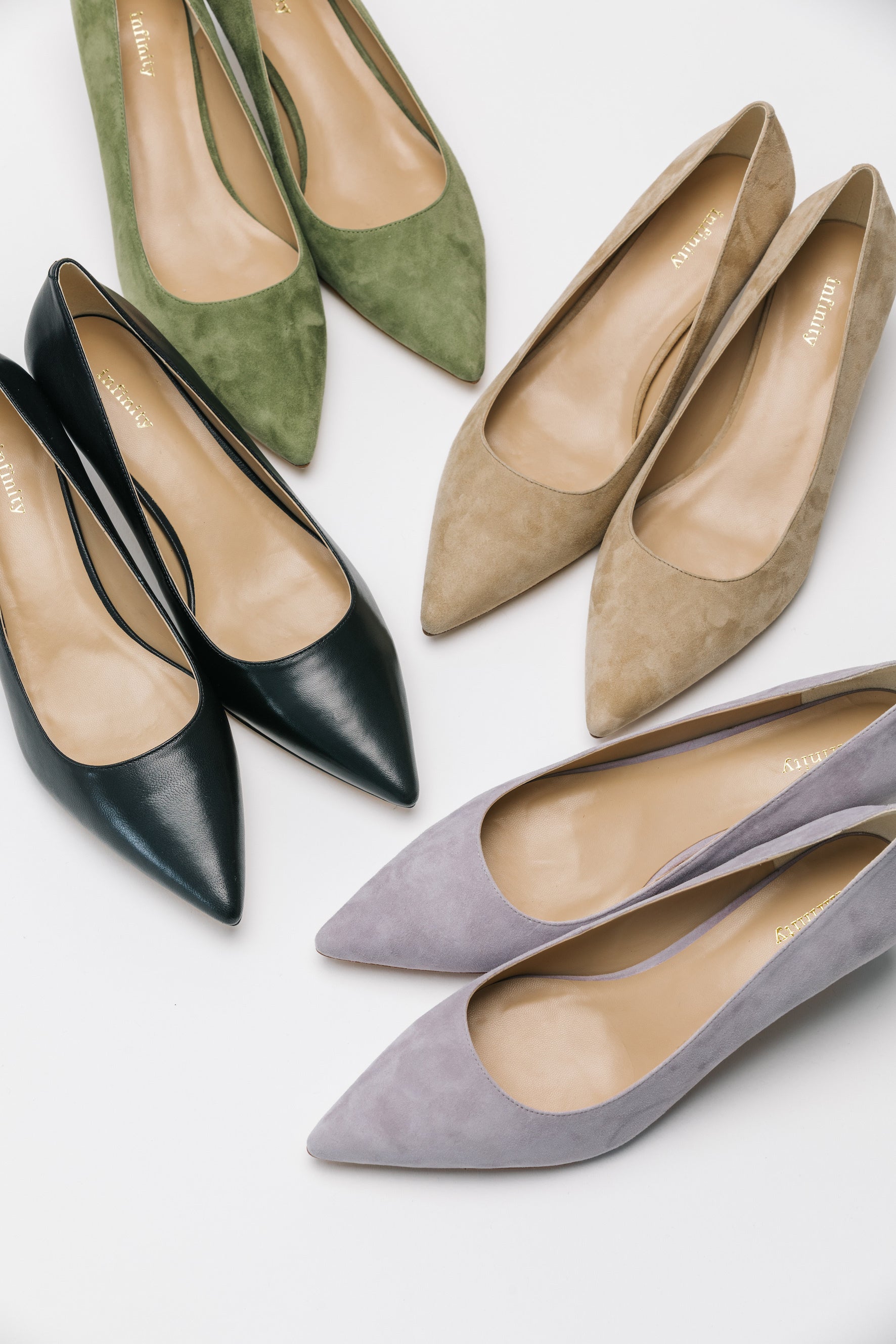 infinityではパンプスの素材として本革・スエードを使用し、高級感のある美しいパンプスを提供させていただいています。このお値段での革靴の提供は当社のこだわりや、皆さんにオシャレを楽しんでいただきたいという思いから実現しました。