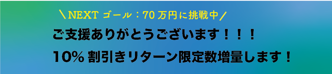 ご支援いただいた金額の使い道を考えましたところ、少しでも多くの方に試していただきたいという思いからリターンにございます数量限定の10%引き販売価格の限定数を増量することと致しました。