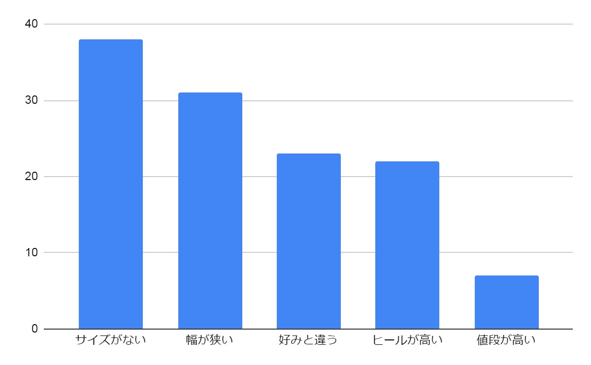 グラフ:40名近くの方にパンプスの悩みについてアンケートを取った結果です(複数回答可)。
