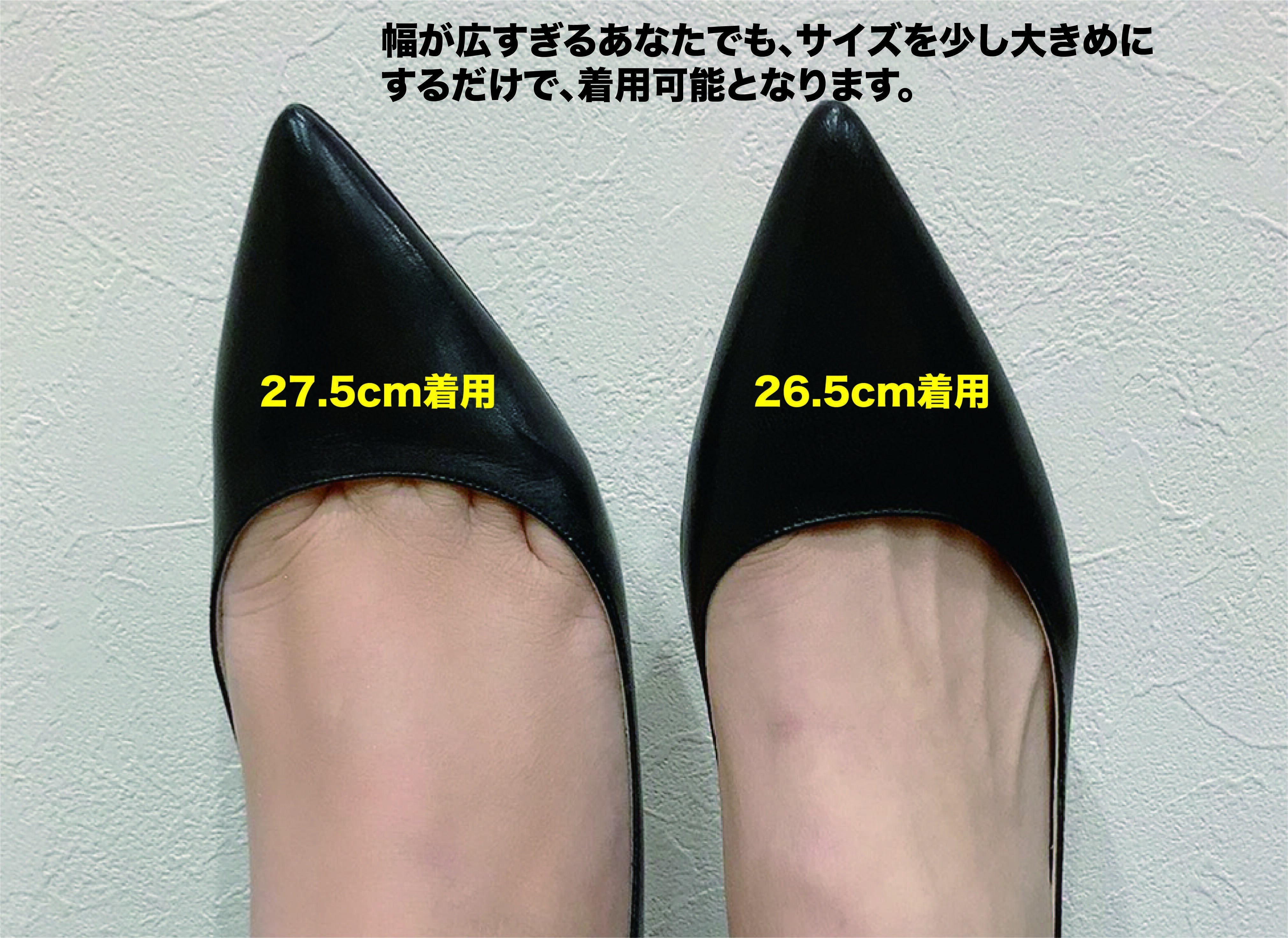 縦幅の悩みにプラスして、よくお客様よりお聞きするのが横幅の悩み。infinityでは通常のパンプスよりもゆとりのある横幅をご用意しております。