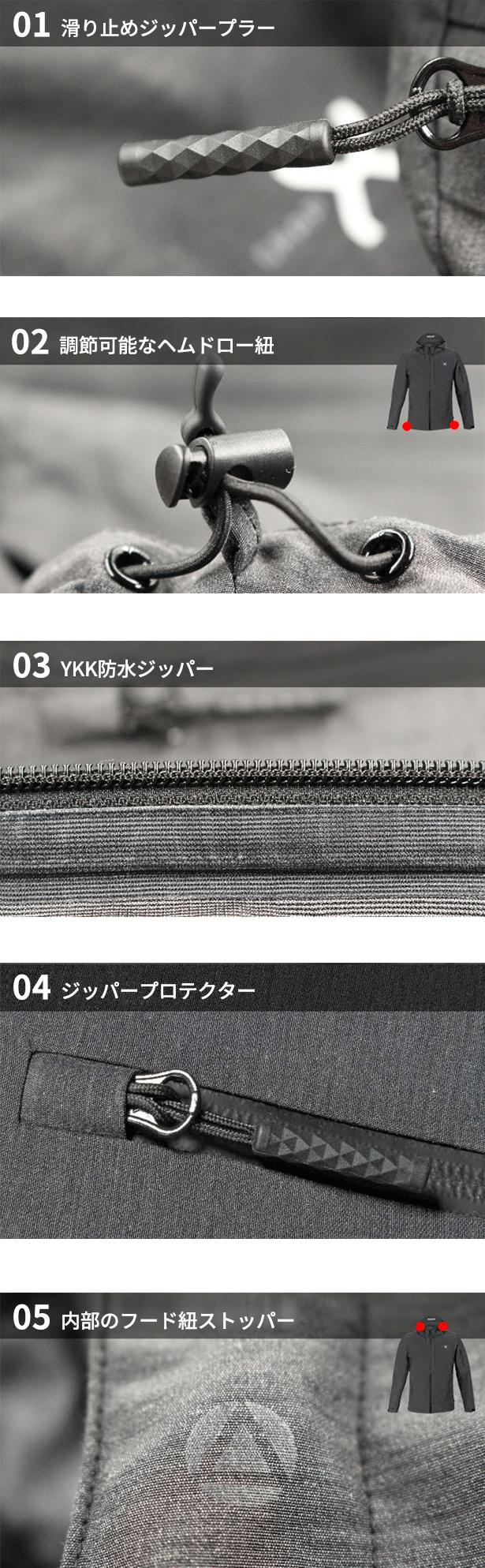 グラフェン層により、防水性、軽量性、透湿性、耐久性などを備えたスタイリッシュなデザインとなっております。