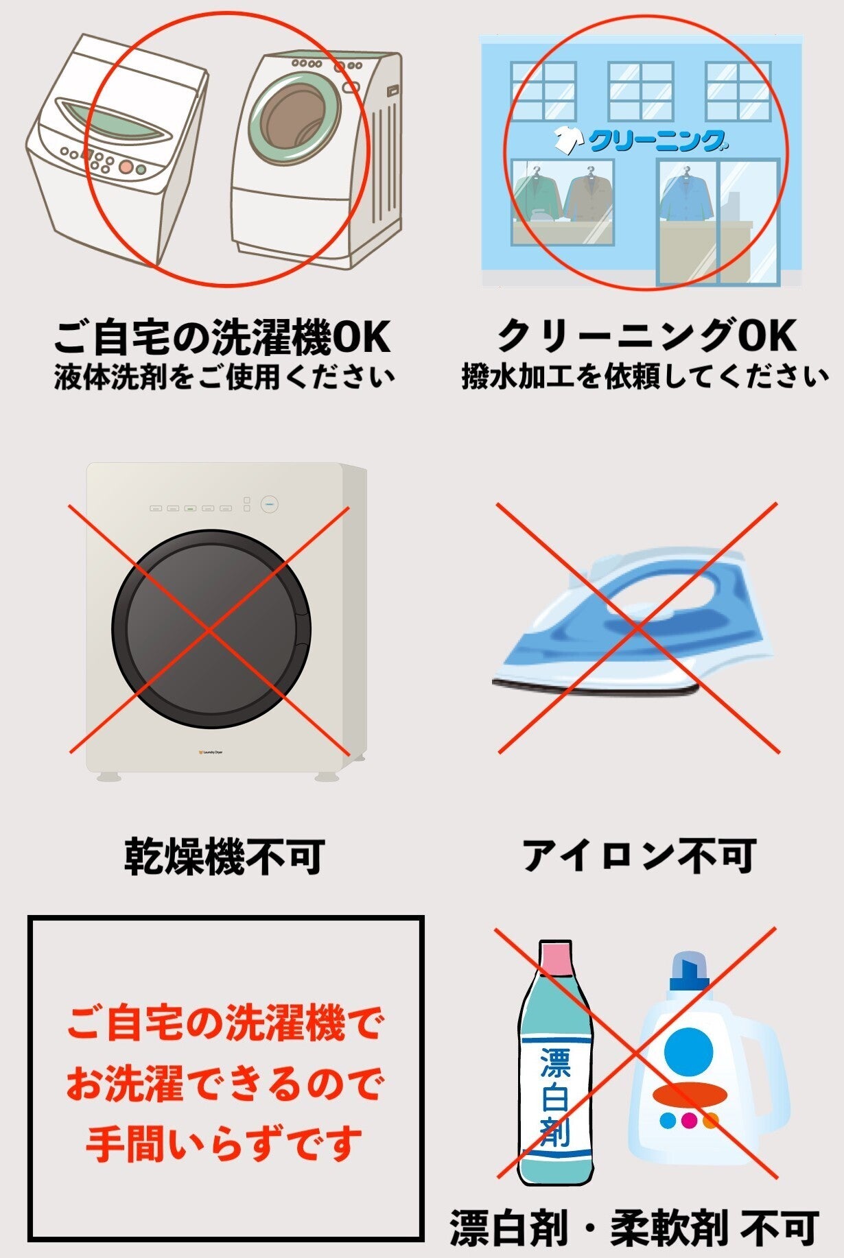 • 撥水 / 防汚 / 防水 / 40℃以下の水でご自宅の洗濯機でお洗濯可能