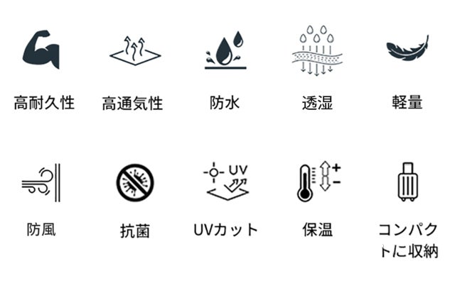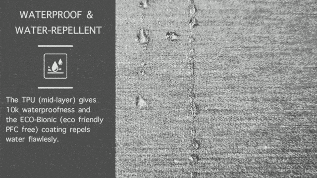 エコバイオニックコーティング:化学物質を加えることなく水を弾き、環境に優しいPFCフリーのコーティング技術を採用しています。