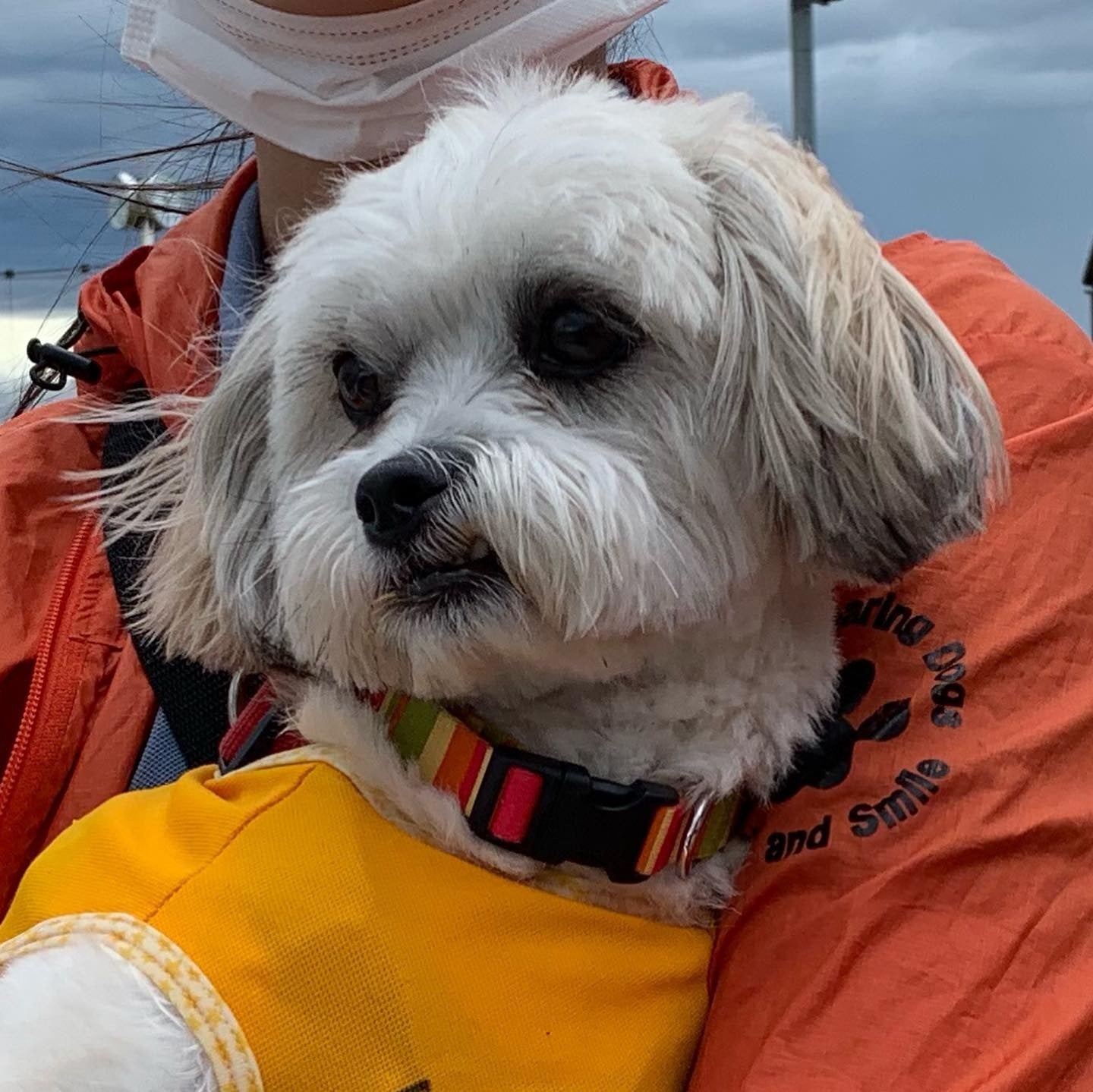 ★3日目は、すごい雨だったんだ。そんな中ドッグランに行ったんだけど、土砂降りでボクはスタッフの長いレインコートの裾で雨宿りしてました。久しぶりのドッグランで嬉しかったけど、もう雨の日には行きたくないな。ビッショビッショになっちゃった。