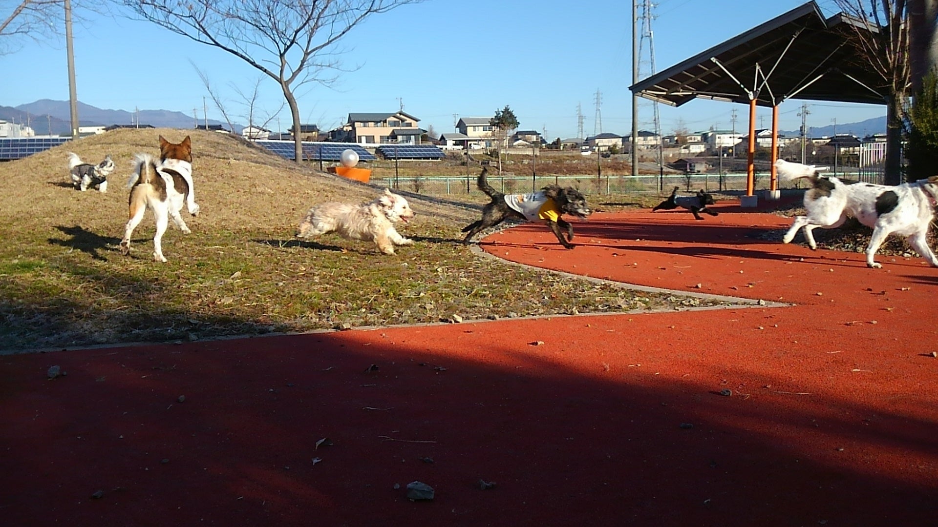じゃあ、これから協会での1日について紹介するわね。アタシたち夜はね、ユーザーさんが泊まる部屋が空いているときは、アタシたちワンズとお泊り担当のスタッフさん一緒に寝てるの。朝は、きちんと座った子から外に出られるの。まず朝は、協会の中にあるドッグランでリフレッシュ。 みんなと一緒に、思いっきり走るの。アタシは走るより、地面に穴を掘るのが大好きなのに、見つかると、スタッフさんとか学院生さんに汚れるからって、いつも止められるのよね。