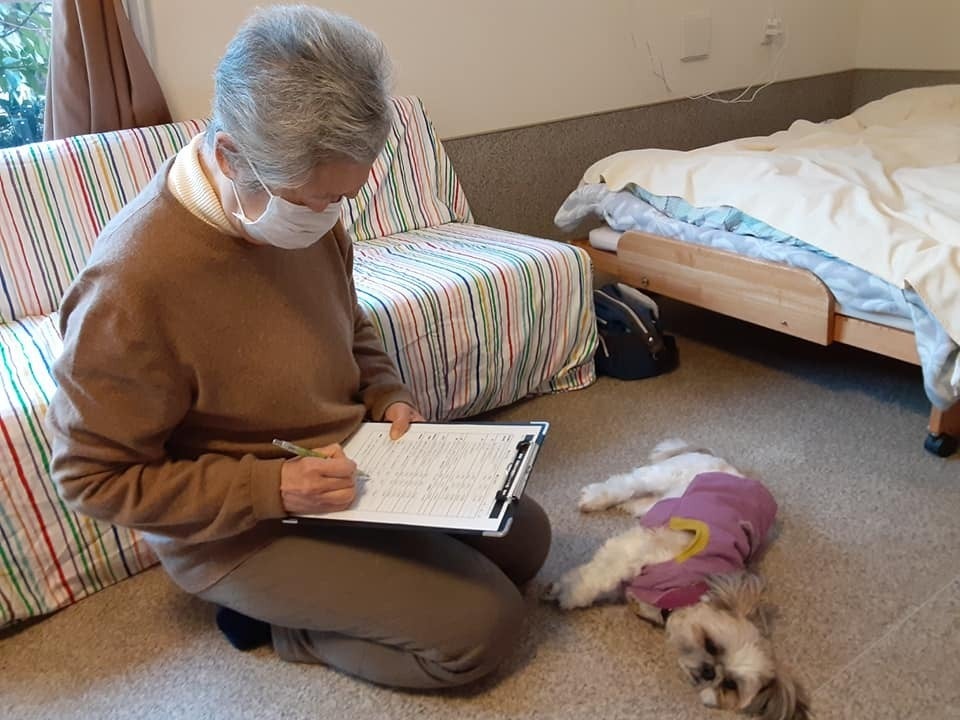 コロナ対策万全で、11月に愛知県から希望者さんが1名様。12月に神奈川県からお2人の希望者さんが滞在訓練を受けられました。12月28日からお一人が、ご家族といらしてくださってます。日本聴導犬協会では、体温チェック、協会への出入りのたび全身消毒。息苦しいけど、シールドと透明マスクの着用。UDトークでの文をタブレットで見やすいように表示。三密をさけて、カメラでのリモート訓練指導などを駆使。