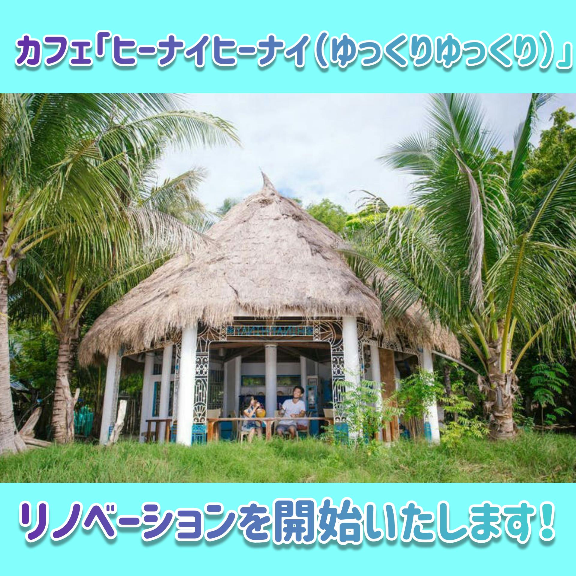 これまでは、砂浜が日帰りでいらっしゃる方々の食事の場になっていましたが、今後は、砂浜の外れにございます、カフェ「ヒーナイヒーナイ」をお食事をする拠点にする計画です。