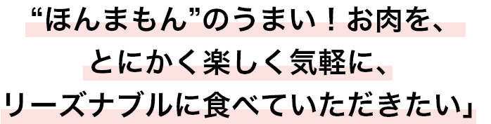 ここには必ず、元気、笑顔、活力、そして…心もほろっと解れる、“圧倒的に”うまい肉(=ほんまもん)があります。