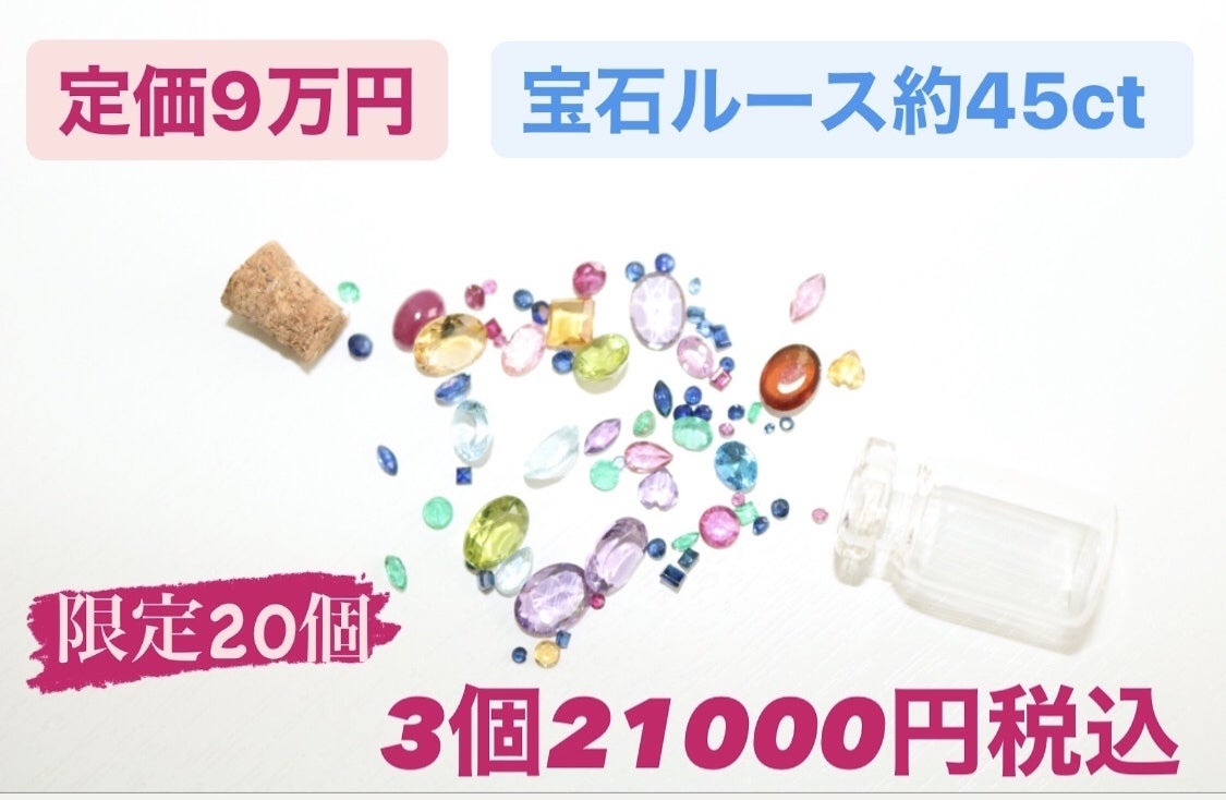 定価90000円が→21000円 小瓶に満タンのルース お礼のお手紙と宝石瓶3個 送料税込み