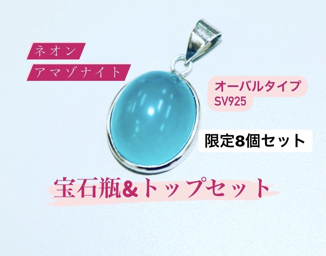 希少石アマゾナイトのネオンブルートップ(ウイグル産)&宝石瓶の限定8セット