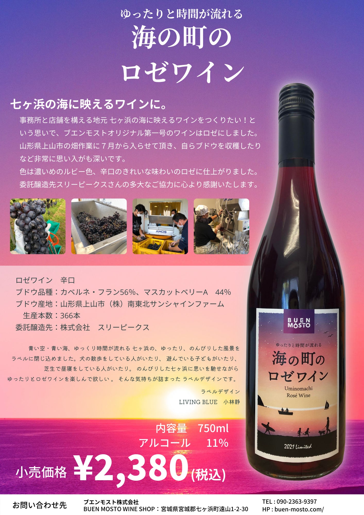 宮城県七ヶ浜町のワイン輸入元ブエンモストが手掛ける初のオリジナルロゼワイン販売開始についてのご案内です。