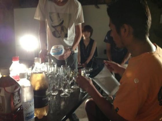 プロのバーテンダーの指導の下、カクテルの練習を行いました。