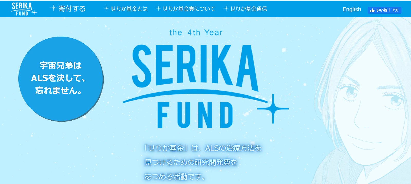 「せりか基金」とは大人気漫画「宇宙兄弟」から生まれた、宇宙兄弟ALSプロジェクト。