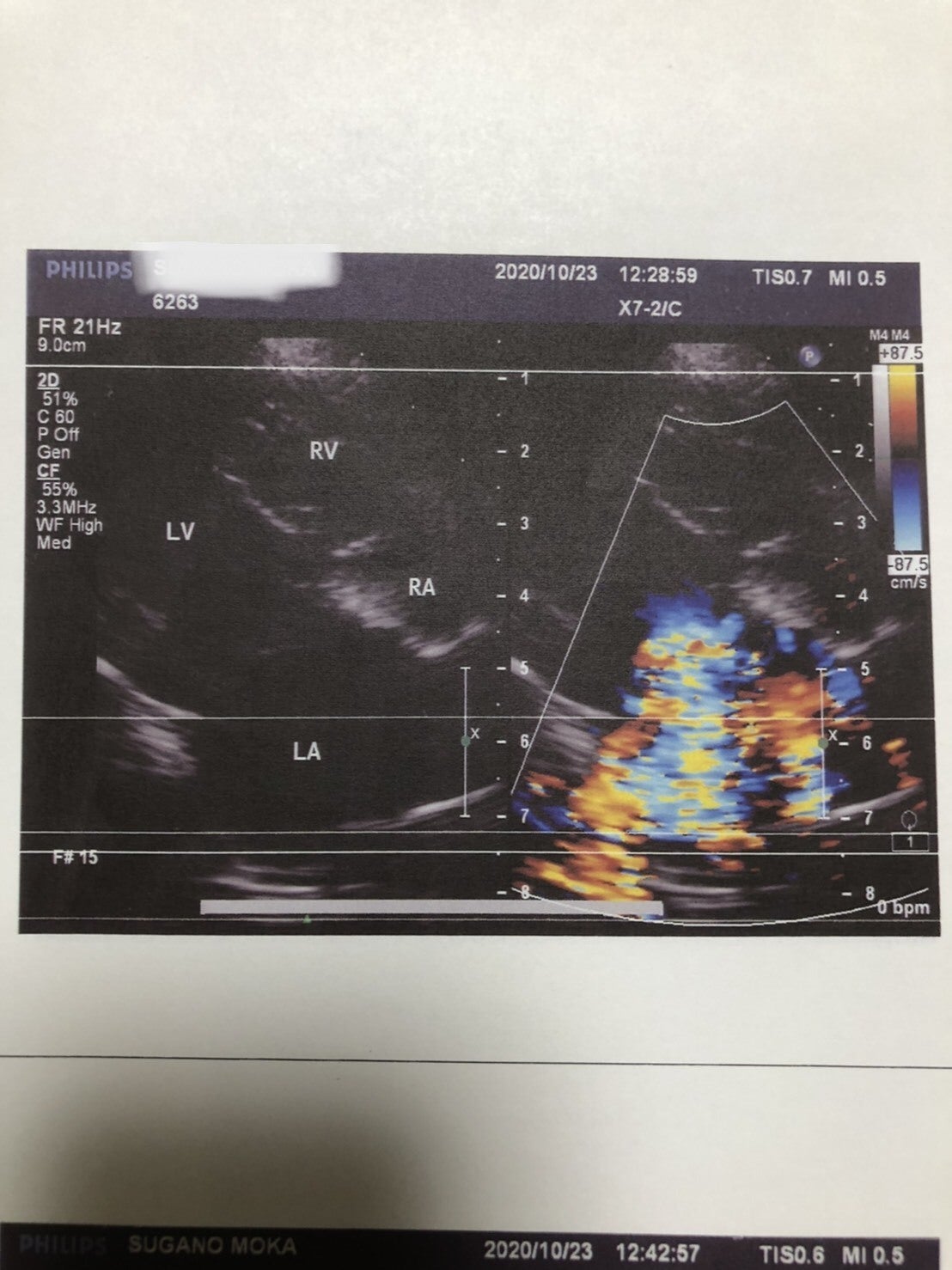 重度の収縮期逆流あり心エコーでは左房、左室ともに拡大が見られ、弁が完全に閉じず多量の逆流が認められる。この検査により強心剤の追加投与を勧められました→早めに紹介元のJ獣医さんのところで処方してもらう予定です。
