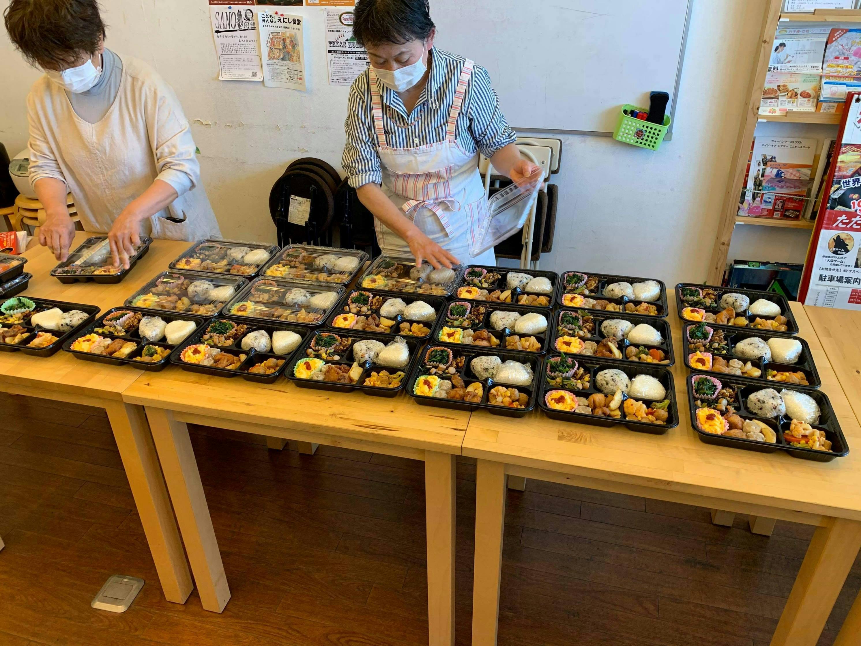 これまで、えにしこども食堂を数十回開催し、子どもから大人、お年寄りまでさまざまな方に参加していただきました。現在は、コロナ対策のため、食事を「お弁当」に切り替えて活動を行っています。