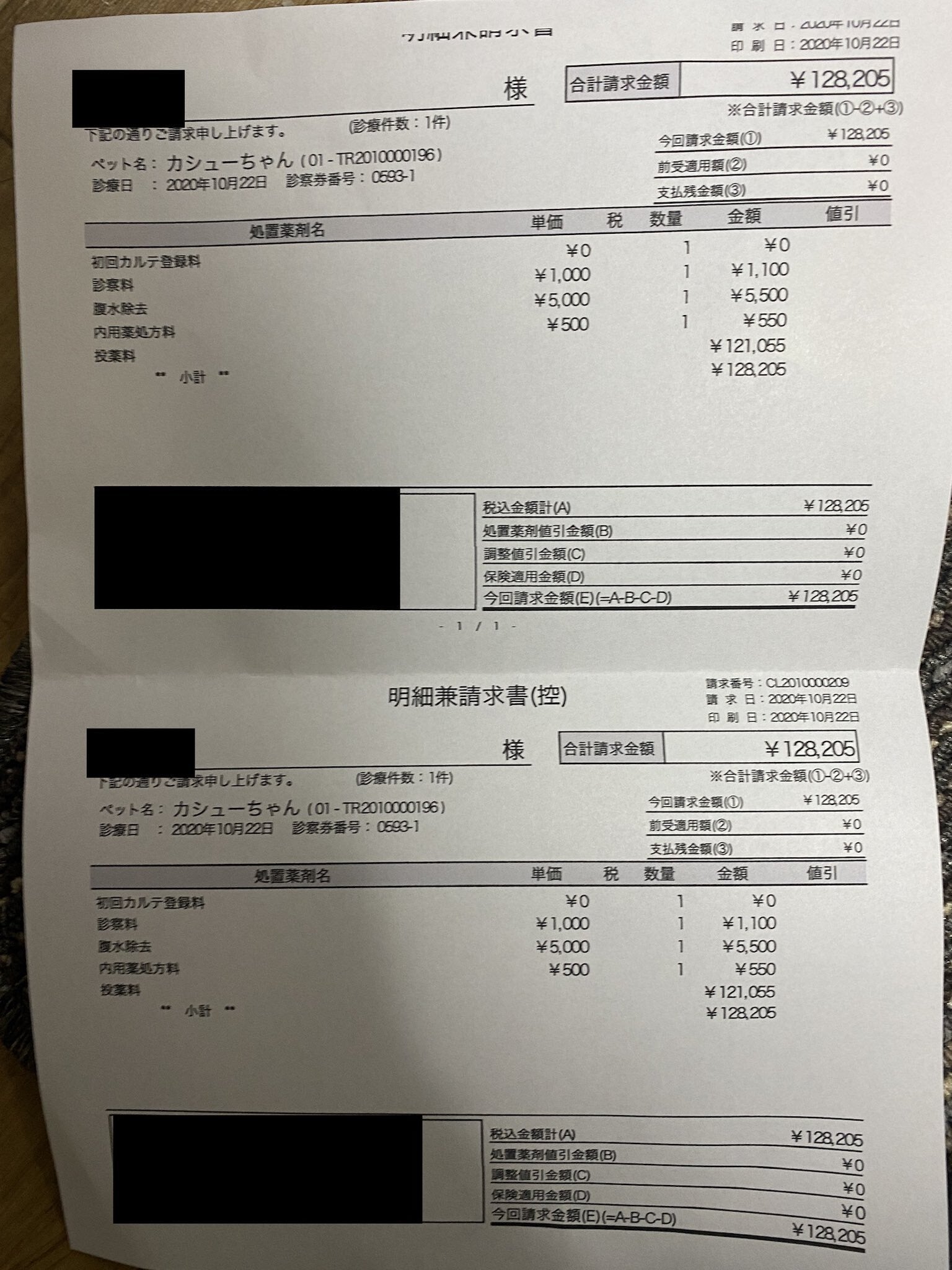猫伝染性腹膜炎と診断されました。この診断が出たその日にはすぐにMUTIANを処方している病院を探して診察をしていただき、そこで10日分の処方を受けましたがカシューを生かすためには必要な金額とはわかっていましたが、実際にこうして明細になるととても84日分はすべての貯蓄を吐き出しても足りないということは確実にわかりました。
