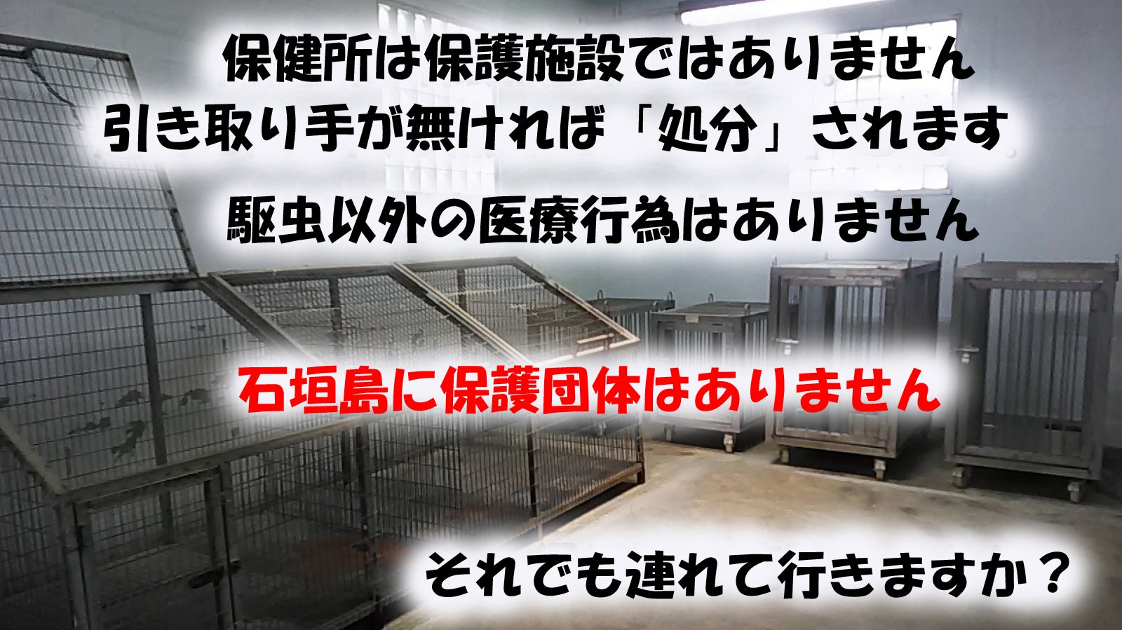 保護団体の無いこの島では保健所を保護施設と勘違いしていて「保護しました、うちで飼えないから保健所へ連れて行きます」と言う人が多いです。
