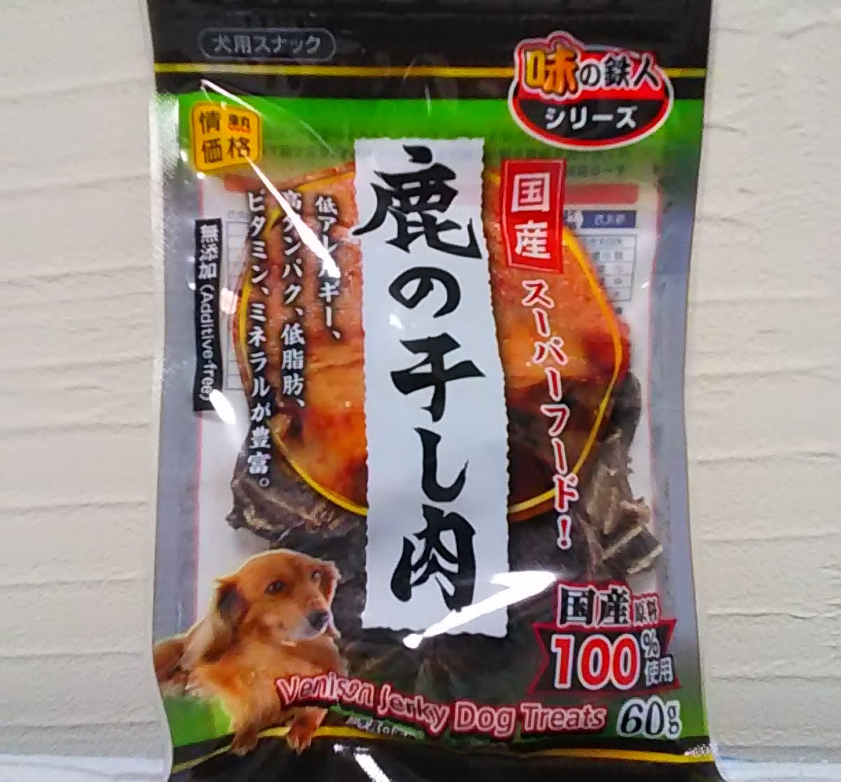 画像はドンキで売っている鹿の干し肉、ワンコのオヤツです。