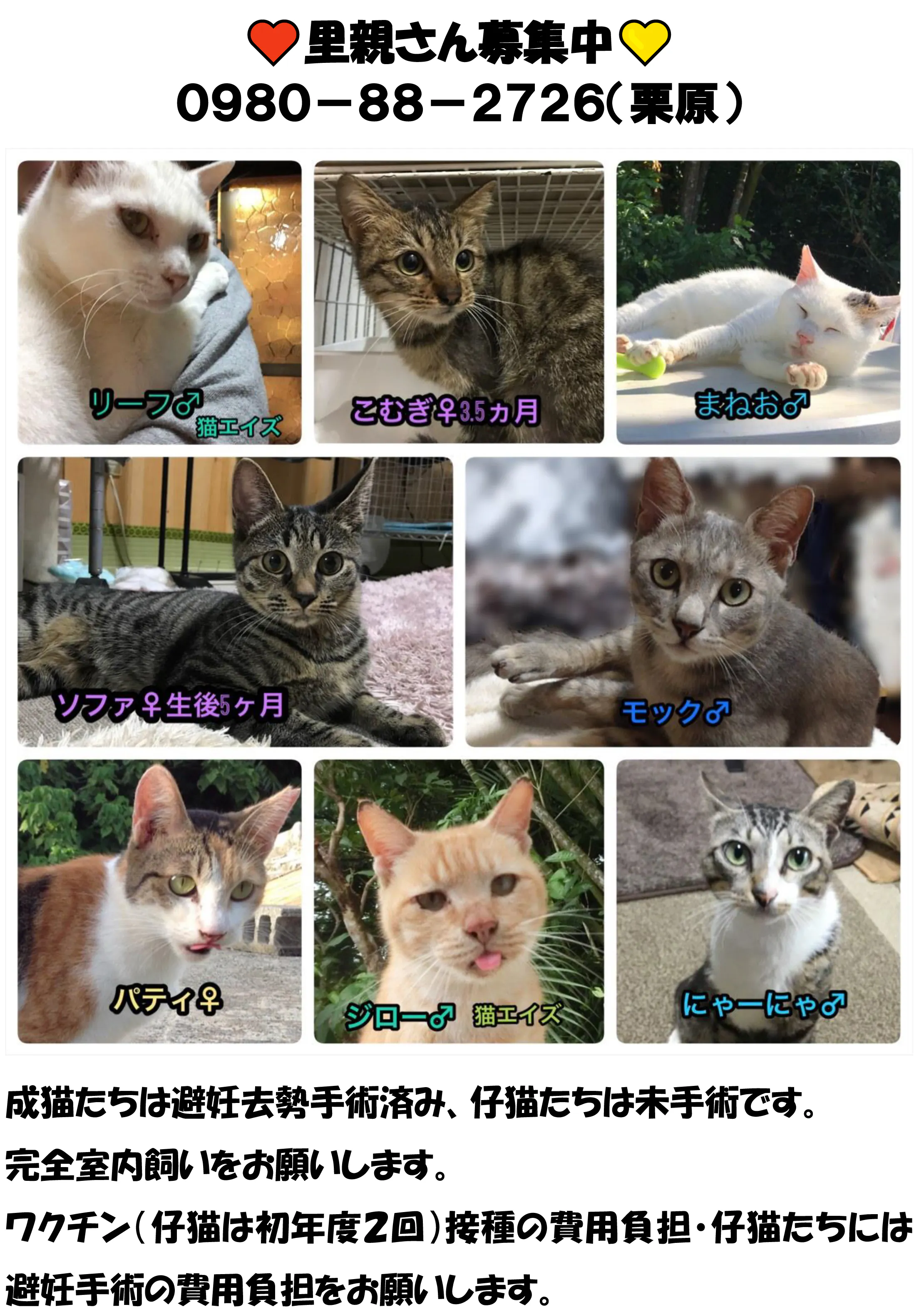出来れば成猫たちを迎えてほしいですね。